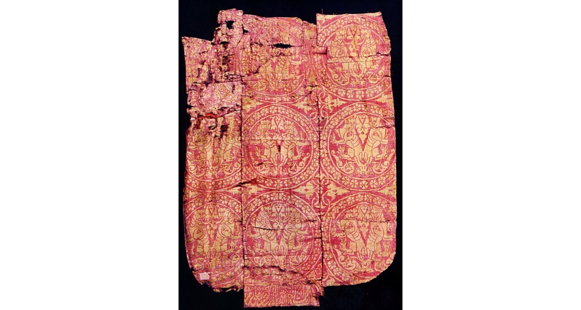 A surviving fragment of fabric with this pattern bears the name of Sultan Kay Qubad I. The textile draws upon pre-Islamic and Islamic iconography typical for Central Asia, but details of the weave indicate that it was produced in Anatolia. The original fragment is at the Musée des Tissus in Lyon.