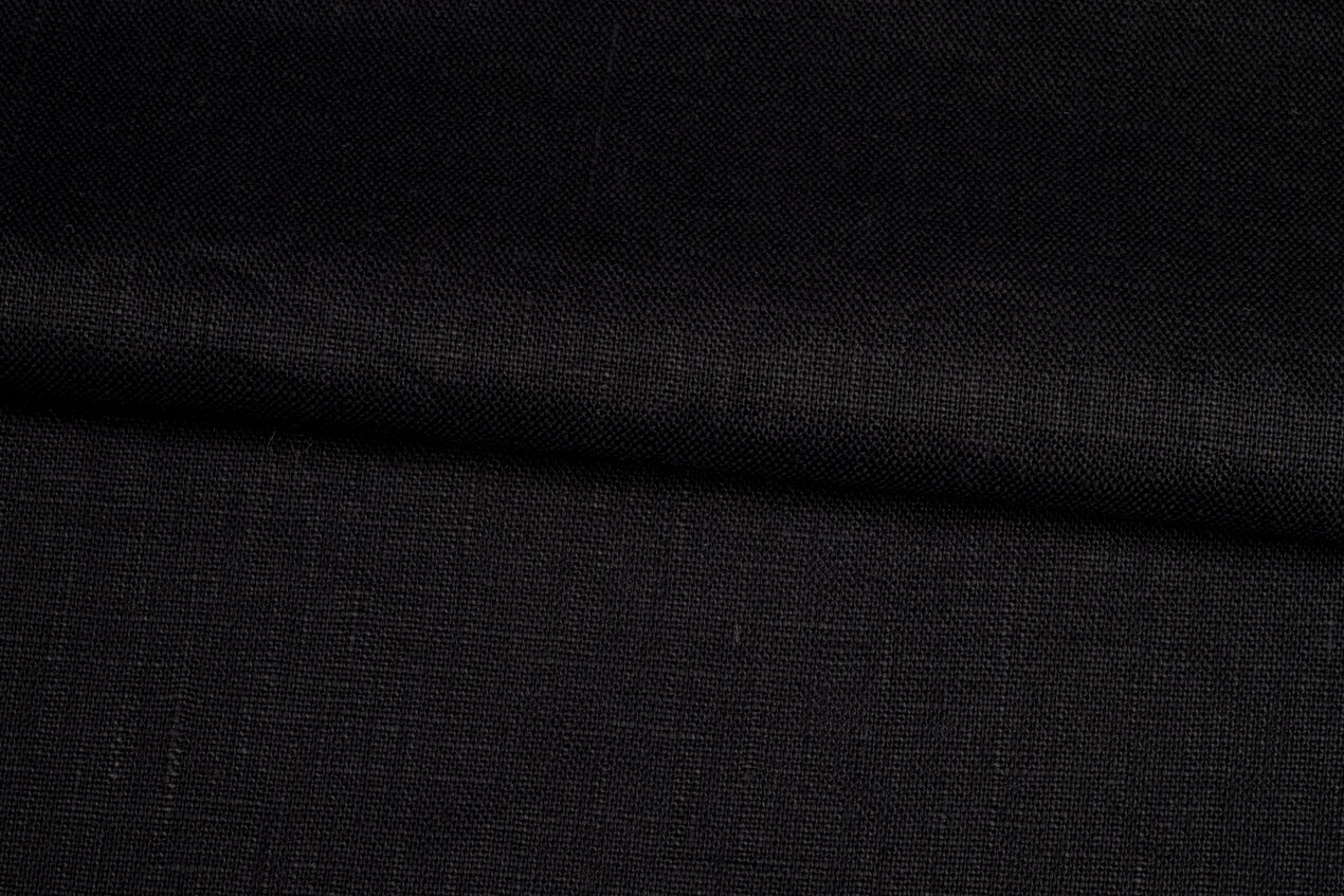 A heavy linen (more than 7oz) fabric in a classic plain weave, made of natural linen in black. Sturdy and quite stiff, our heavy linen works well in skirts, trousers, and jackets, as well as for curtains and pillowcases.