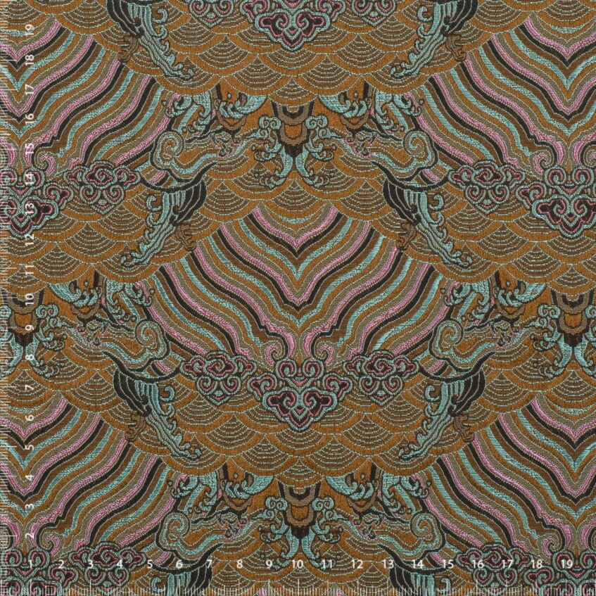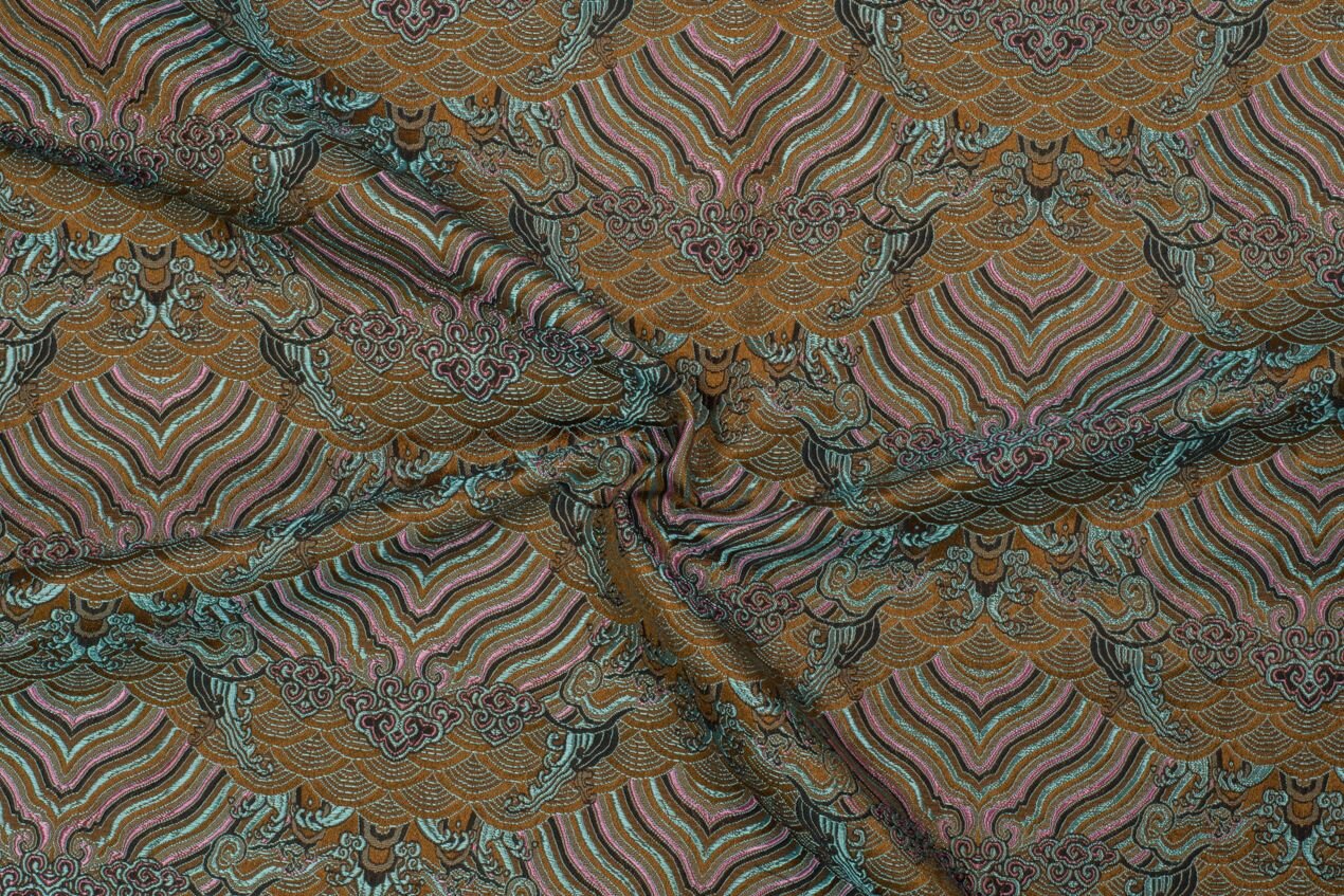 This brocade is a beautiful, opulent fabric created using the jacquard technique, which makes the production of highly detailed, woven patterns possible. Its intense colors, effective combination of matte and luster, and tactile surface, put it in a class of its own. Historically, brocade has always numbered among prestige fabrics, and that remains true to this day.