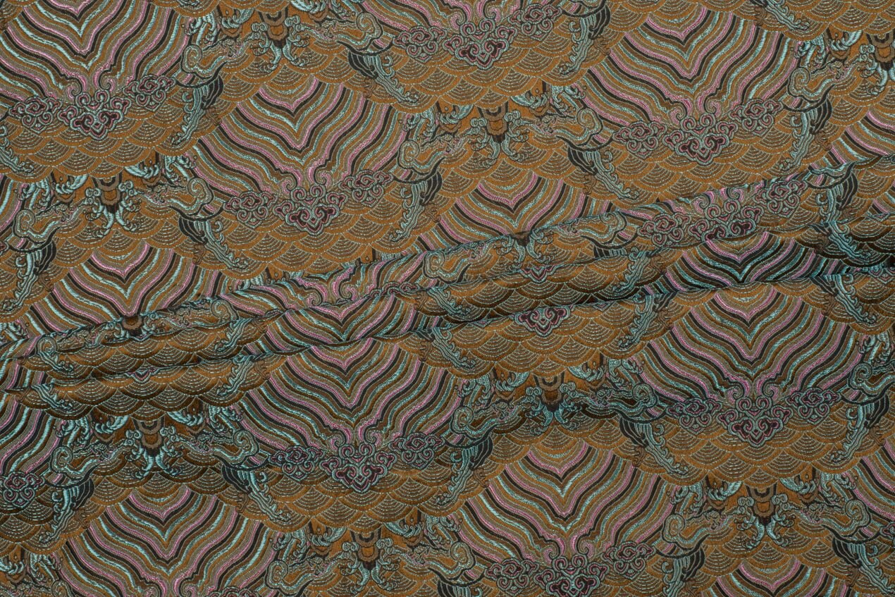 Our brocade is woven of very fine threads (the warp is polyester, the weft rayon) but is sturdy, with a moderately crisp hand, making it a good choice for tailored patterns and garments that have to hold their shape. Use it for formal and wedding gowns, skirts, jackets, and evening bags and clutches. In everyday wear it excels in pencil skirts, trousers, or jackets. Menswear applications include ties and bow ties, vests, blazers, and dinner jackets. It is a classic for home decor (pillowcases, tablecloths, curtains) and a go-to for corsets and historical and theatrical costumes.