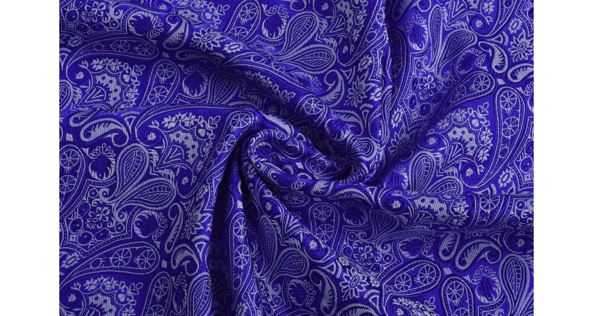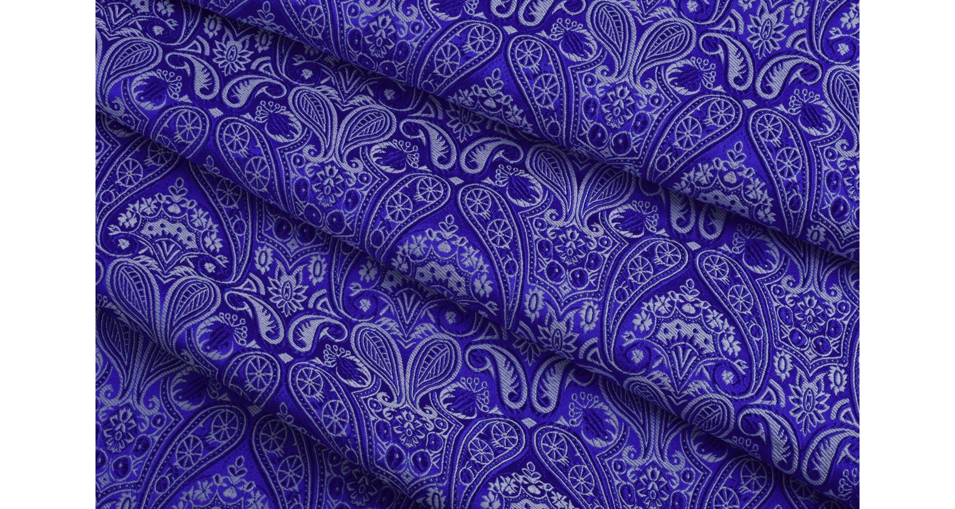 This blue and white brocade is a beautiful, opulent fabric created using the jacquard technique, which makes the production of highly detailed, woven patterns possible. Its intense colors, effective combination of matte and luster, and tactile surface, put it in a class of its own. Historically, brocade has always numbered among prestige fabrics, and that remains true to this day.