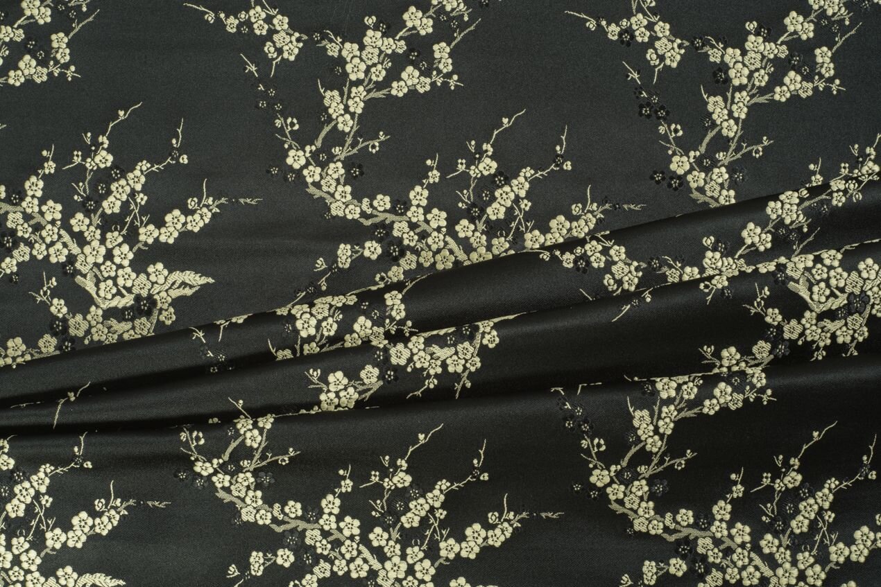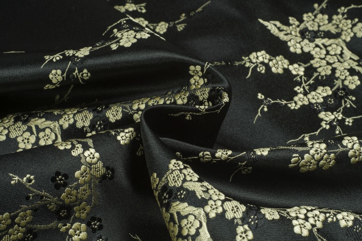 Our brocade is woven of very fine threads (the warp is polyester, the weft rayon) but is sturdy, with a moderately crisp hand, making it a good choice for tailored patterns and garments that have to hold their shape. Use it for formal and wedding gowns, skirts, jackets, and evening bags and clutches. In everyday wear it excels in pencil skirts, trousers, or jackets. Menswear applications include ties and bow ties, vests, blazers, and dinner jackets. It is a classic for home decor (pillowcases, tablecloths, curtains) and a go-to for corsets and historical and theatrical costumes.