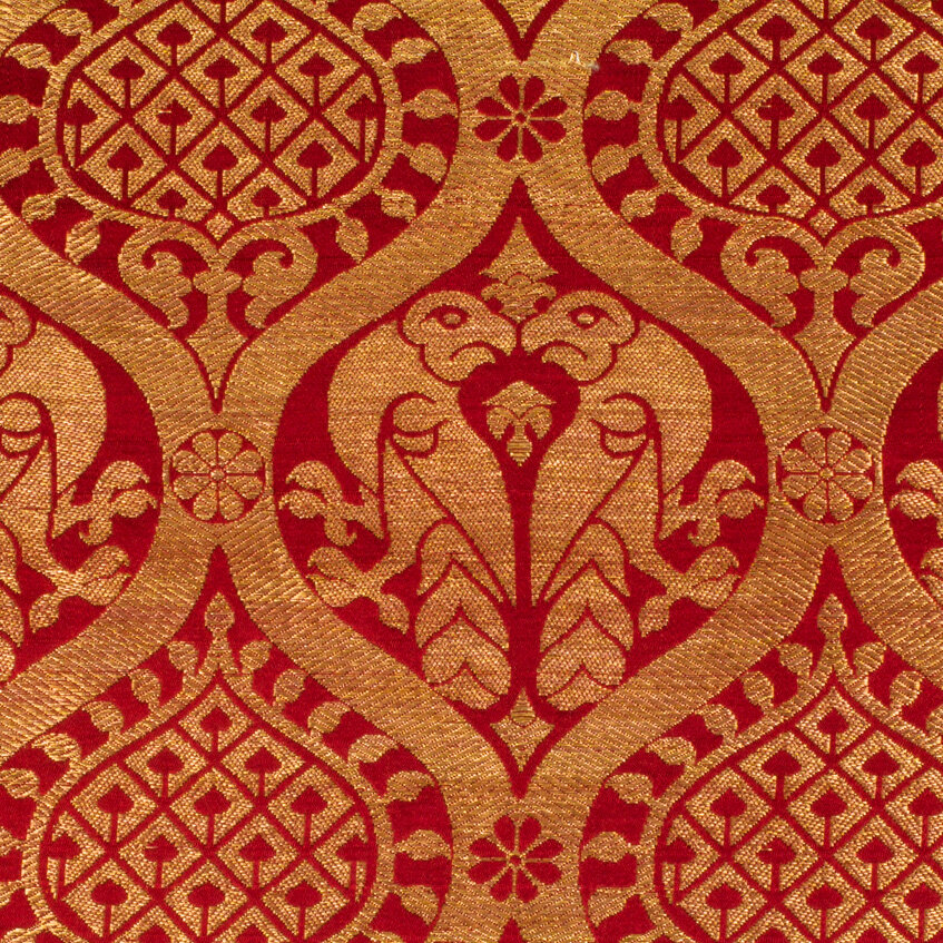 This particular fabric was found in the treasury of the Regensburg Cathedral in Germany, where it lined a casket for remains. The original fragment is now located at the Kunstpalast in Düsseldorf.