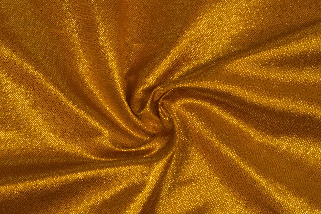 Our brocade is woven of very fine threads (the warp is polyester, the weft rayon) but is sturdy, with a moderately crisp hand, making it a good choice for tailored patterns and garments that have to hold their shape. Use it for formal and wedding gowns, skirts, jackets, and evening bags and clutches. In everyday wear it excels in pencil skirts, trousers, or jackets. Menswear applications include ties and bow ties, vests, blazers, and dinner jackets. It is a classic for home decor (pillowcases, tablecloths, curtains) and a go-to for corsets and historical and theatrical costumes.
