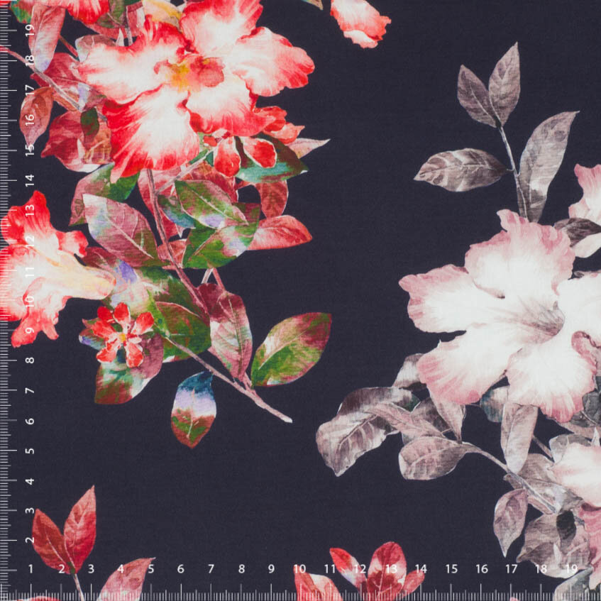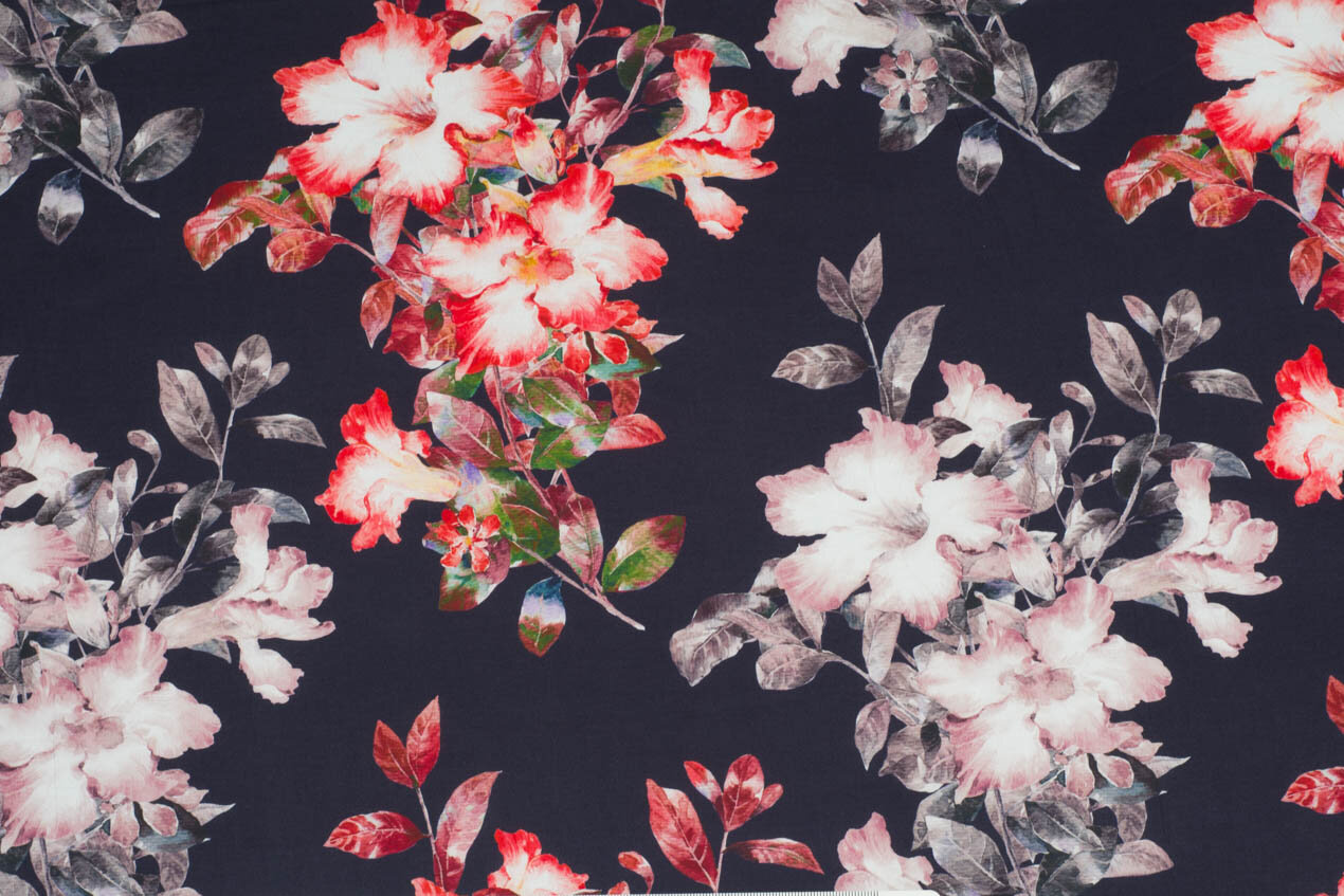 Fine, densely woven batiste in 100% cotton. Perfect for breezy dresses, tops, and summer scarves. Versatile and easy to work with, perfect for novice and advanced sewers. Beautiful dark blue fabric with a floral pattern.