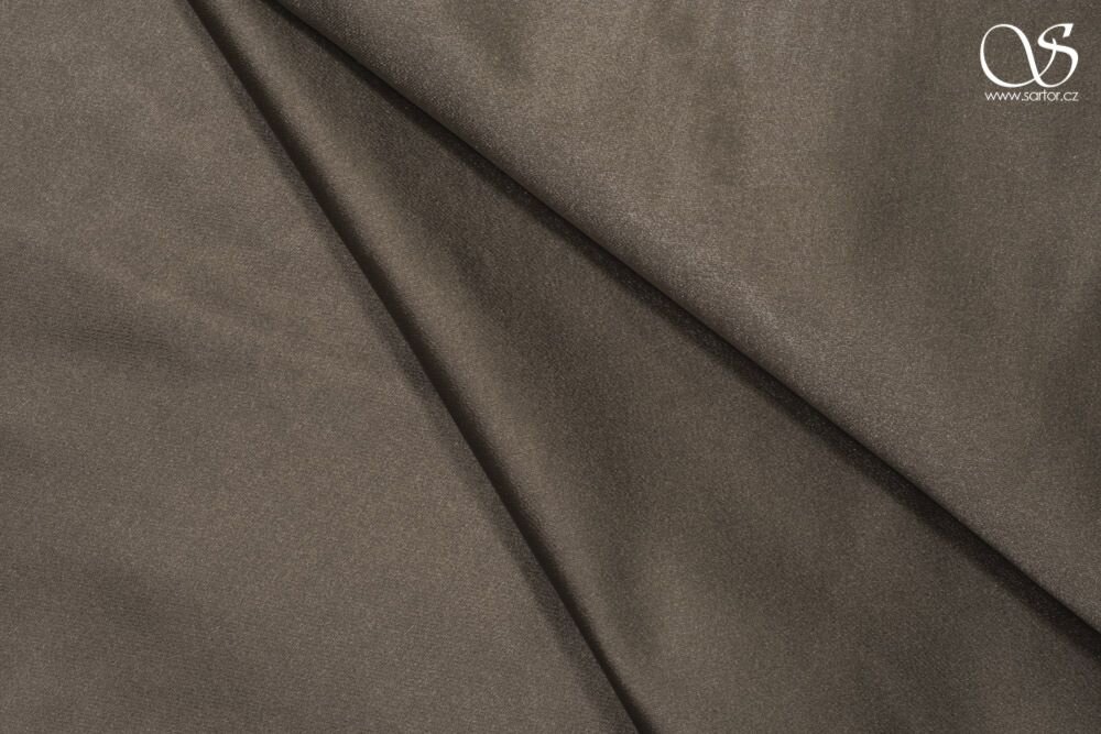 A heavy, glossy fabric in a fine rayon polyester blend in grey. Outstanding in wedding gowns, formalwear, and home decor.