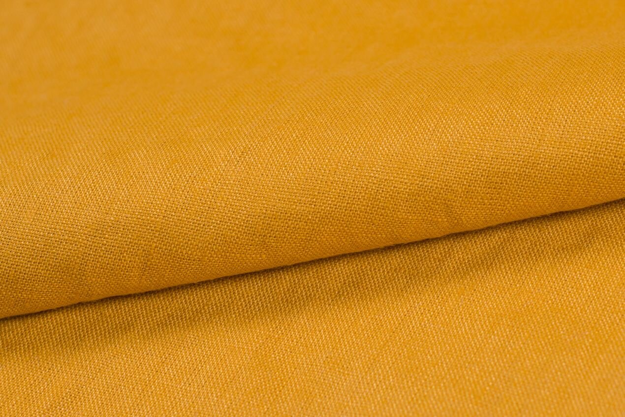 This linen in saffron is a versatile material for clothing and home decor. This classic, medium linen is great for kerchiefs, skirts, trousers, and summer jackets, and performs well in curtains and pillowcases too. It lends itself to modern garments, and really comes into its own in period costumes (dresses, tunics, leggings). It is sturdy and resilient, breathes well, and is easy to care for. Our linens are softened, making them smooth and pleasant to the touch, without any of the itchy roughness typical for other linen fabrics.