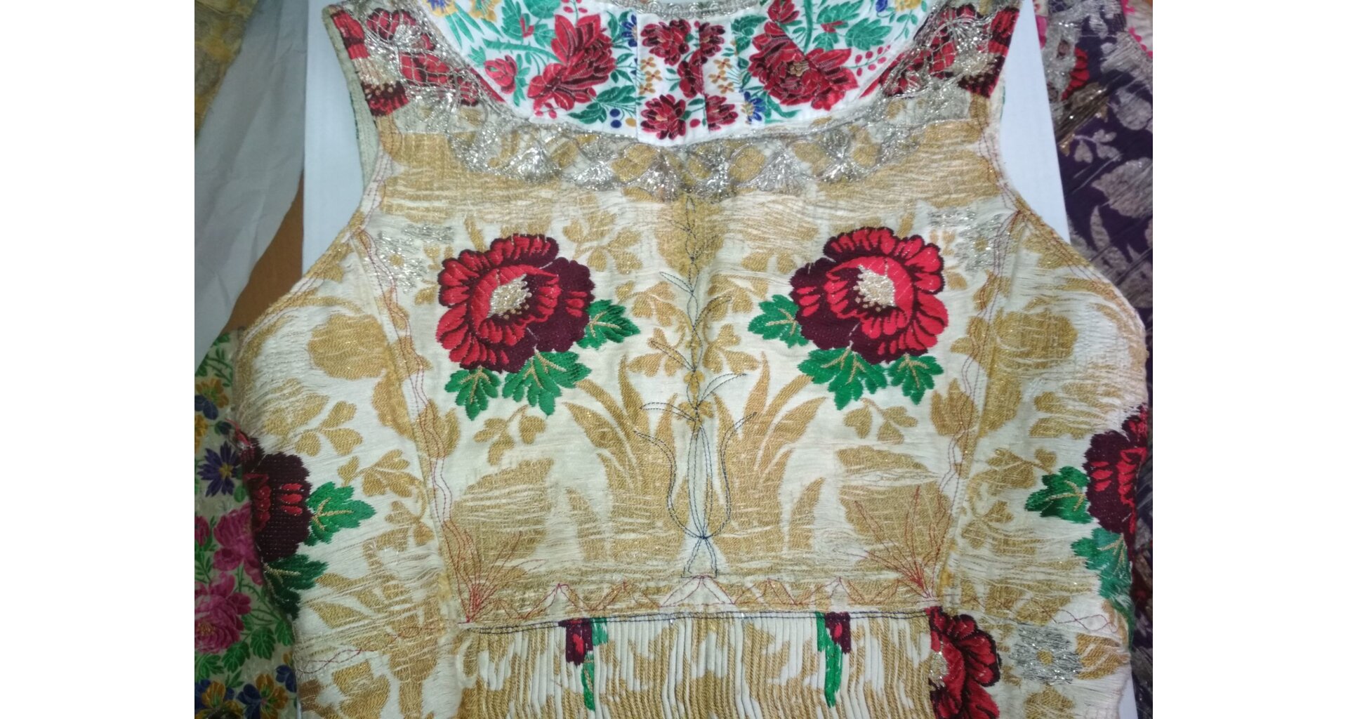 Fertoch, jupka, kandus, rozplasenka, serka! When we talk about traditional folk costumes – “kroj” in Bohemia (or Silesia, Moravia, and Slovakia for that matter) it means grappling with a whole new vocabulary. I learned that the hard way when I set off this February on a quick information gathering trip to western Bohemia. We were working on a new brocade in our historical reproduction series… and for the first time ever, I had a living, breathing first-hand source to answer my questions!