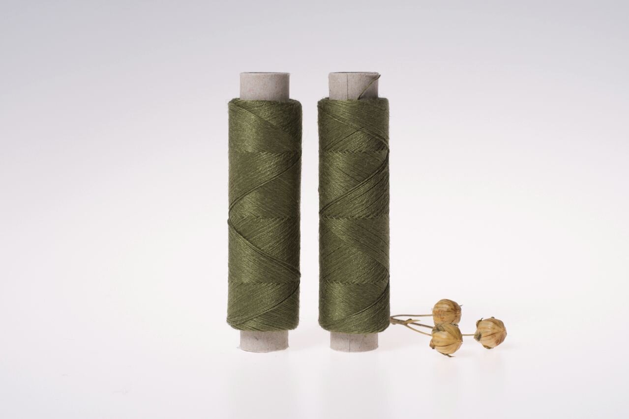 Strong thread made of natural flax linen, suitable for hand and machine sewing. This 20x3 linen thread is a bit thicker than ordinary general-purpose thread but finer and softer than unbleached thread.
