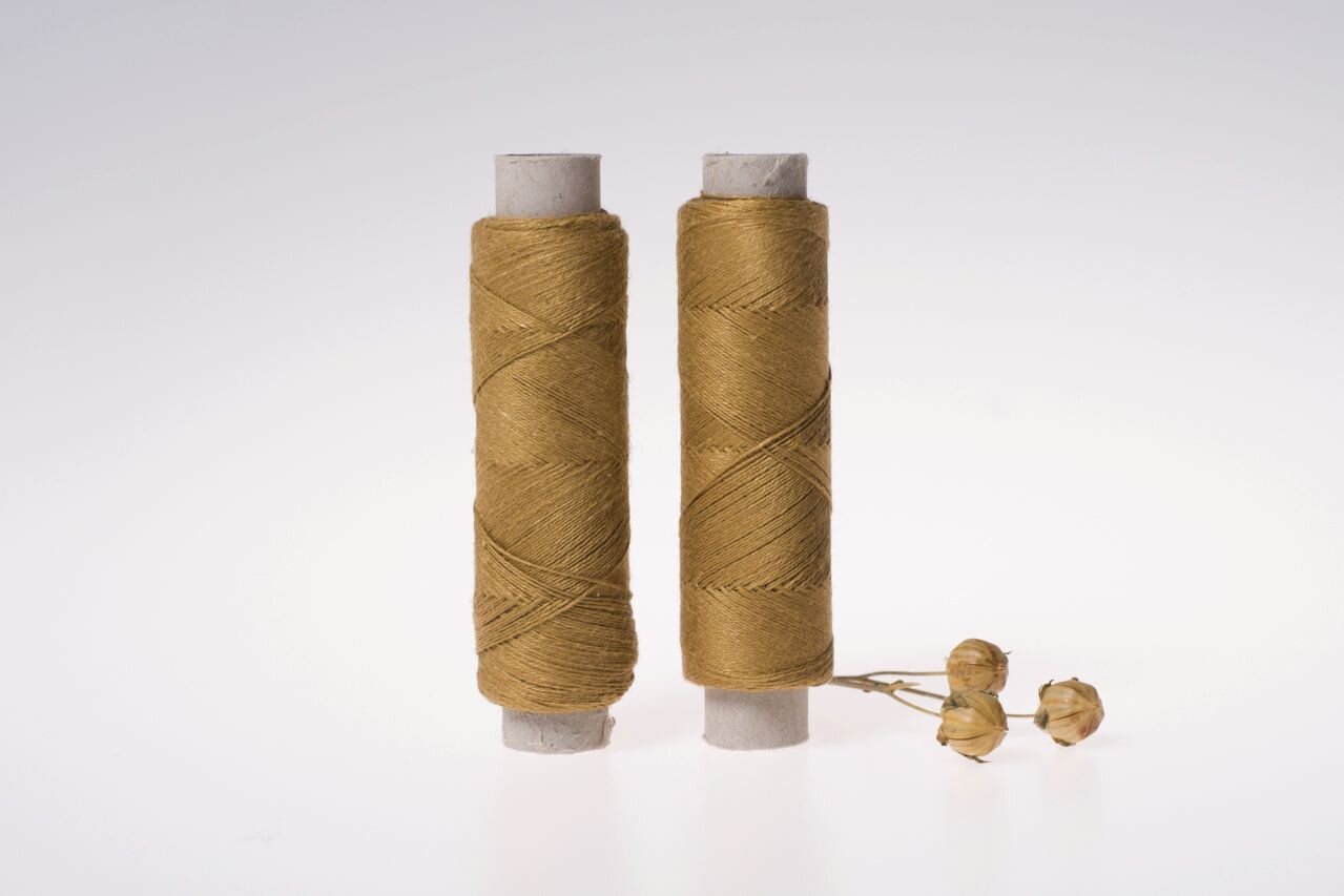 Strong thread made of natural flax linen, suitable for hand and machine sewing. This 20x3 linen thread is a bit thicker than ordinary general-purpose thread but finer and softer than unbleached thread.