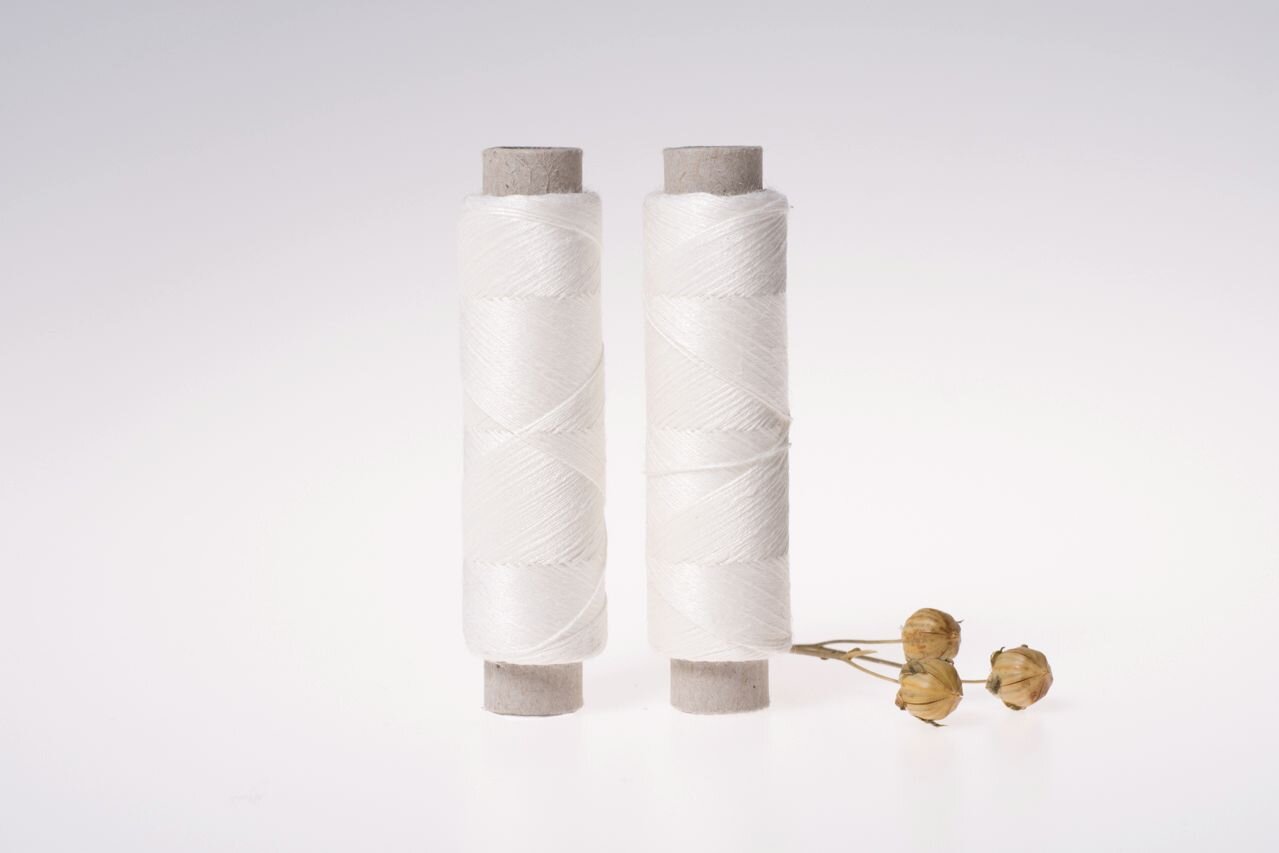 Linen thread can be laundered at 60°C and ironed on high. When caring for garments sewn with linen thread, follow care guidelines for the fabric used.