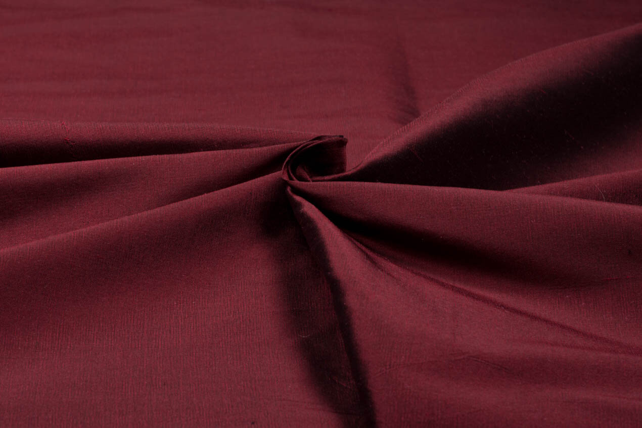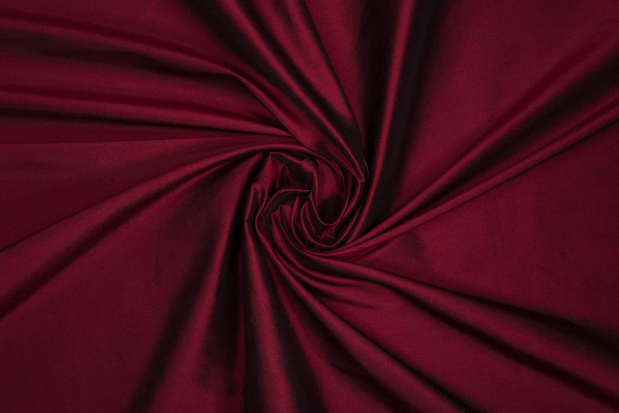 A crisp natural silk fabric in burgundy with a very subtle slub, quite similar to shantung, silk dupioni is a popular choice for formalwear and bridal fashions but also works well in everyday pieces and accessories.