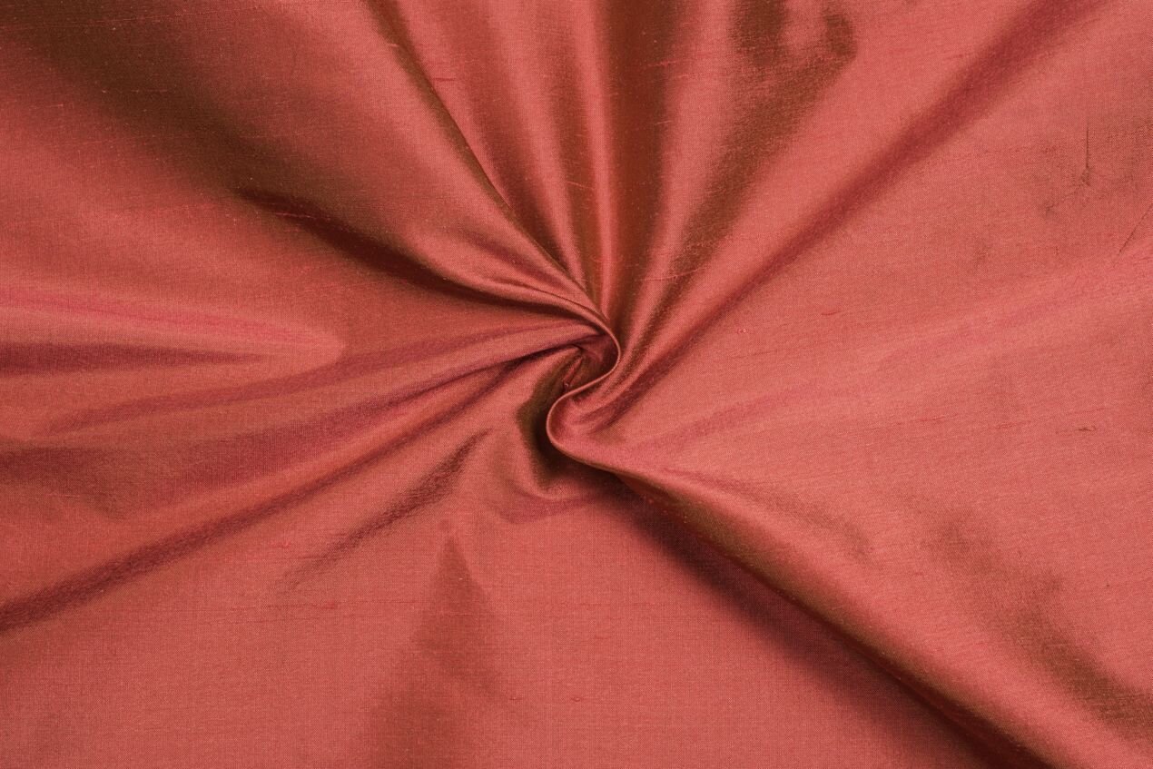 A crisp natural silk fabric in coral with a very subtle slub, quite similar to shantung, silk dupioni is a popular choice for formalwear and bridal fashions but also works well in everyday pieces and accessories.