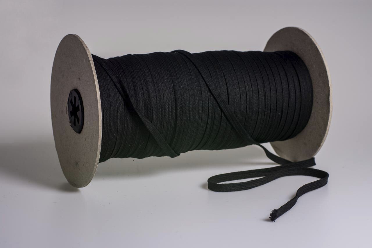 This flat, hollow cord is 100% cotton. It is low-profile, thin, but quite sturdy. This is a good choice for lacing a corset if you don’t want the lacing to show under the outer garment, as can happen with round laces or broad ribbons.