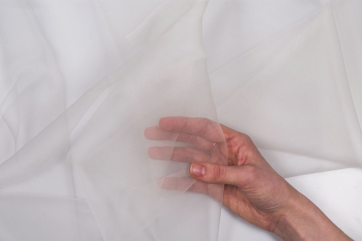 Silk crepeline is ultralight and sheer. It’s a stiff fabric with virtually no drape that really holds its shape, a quality it retains even after washing. Used widely in textile restoration to secure damaged areas and support fine, delicate fabrics and garments, it can also find any range of applications in your sewing studio.