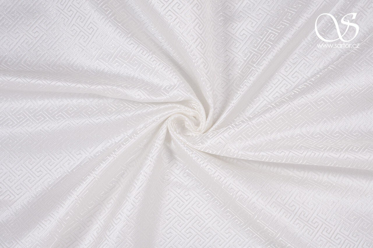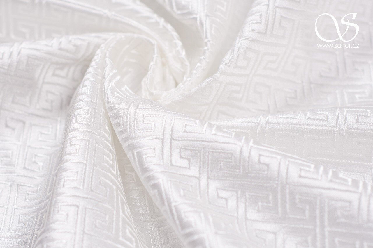 A sturdy, luxurious fabric with a detailed brocaded pattern in ivory. This brocade has a moderately crisp hand, making it a good choice for tailored patterns that have to hold their shape. Use it for formal gowns, skirts, corsets or vests.