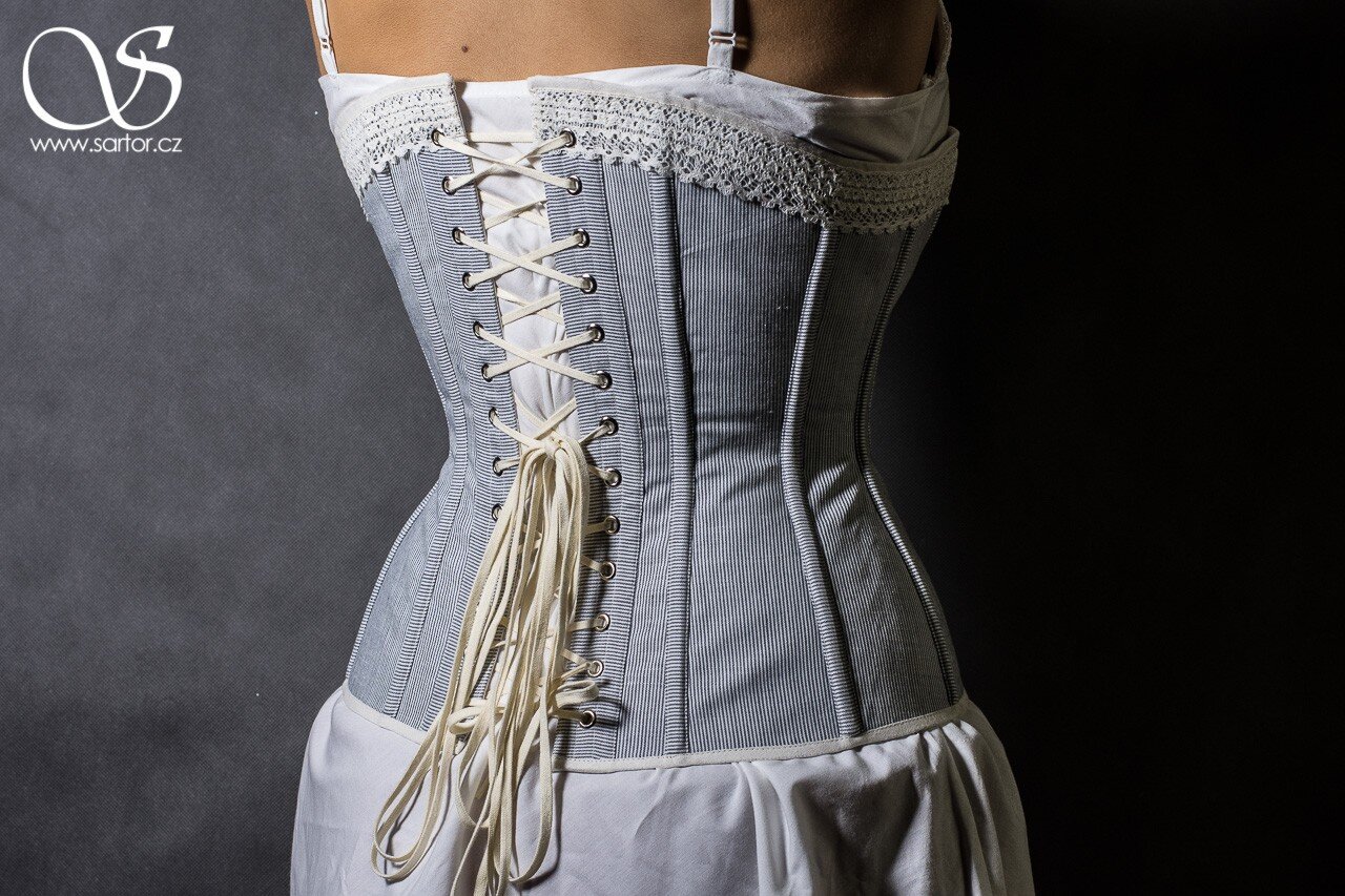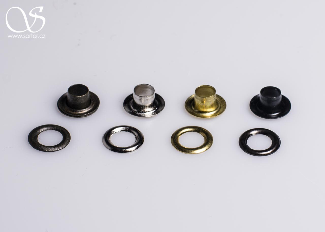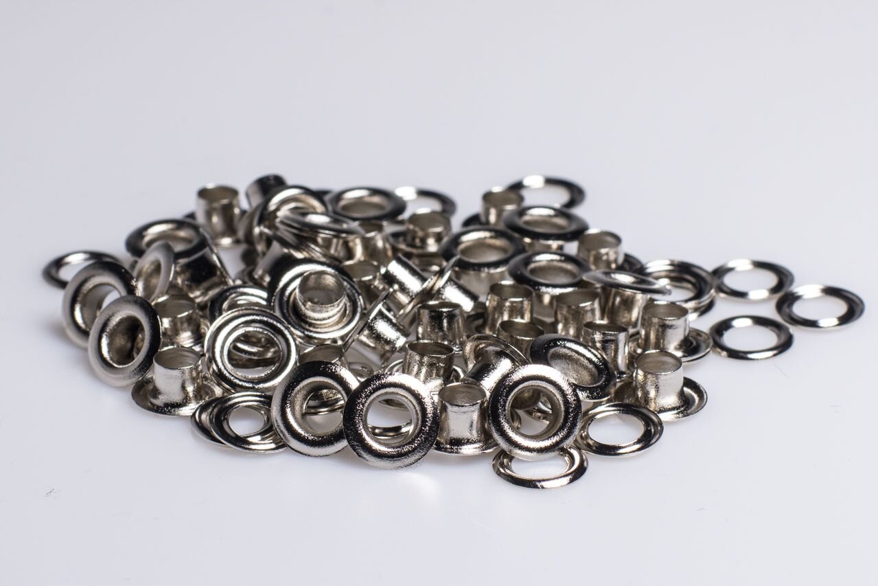 Metal eyelets for reinforcement of lacing holes. For tight-laced corsets, combine them with lacing bones.