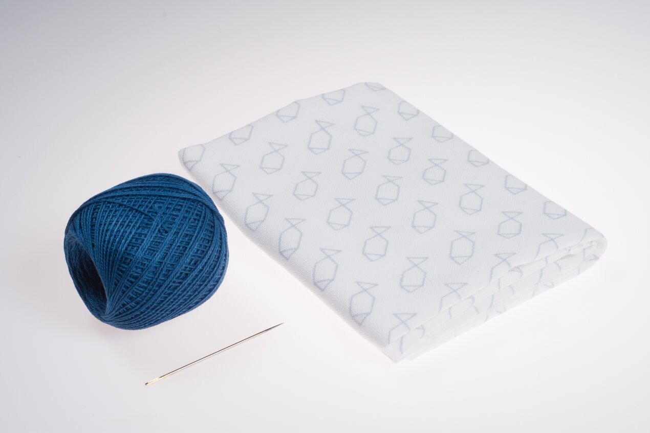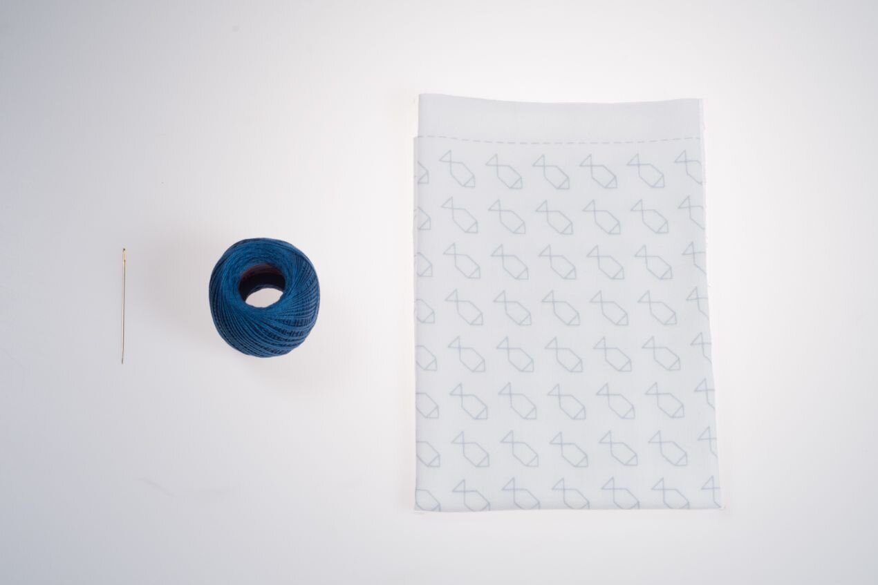 Sashiko is a traditional Japanese needlework technique originally intended simply for reinforcing and mending clothing. Over time an array of distinctly minimalist geometrical designs has evolved. In traditional sashiko patterns the needlework is done on indigo dyed deep blue fabric with special cotton sashiko thread, thicker than ordinary thread, that is a loose twist of several thinner strands. At first glance it resembles crochet thread or embroidery floss but is fundamentally different; both crochet thread and embroidery floss are twisted more tightly and floss is glossier and less sturdy. Naturally, you can try your hand at sashiko using any kind of thread, but for the right effect and an authentic look we recommend using sashiko thread. To work with this thread, you’ll need a sashiko needle or at least a fairly big needle with a large eye. Sashiko needles are longer and stronger, and sewing with them is much easier.