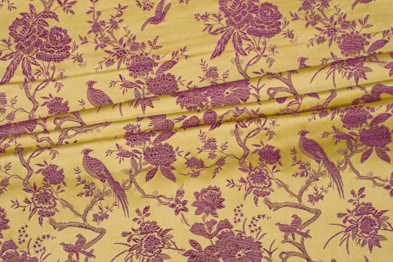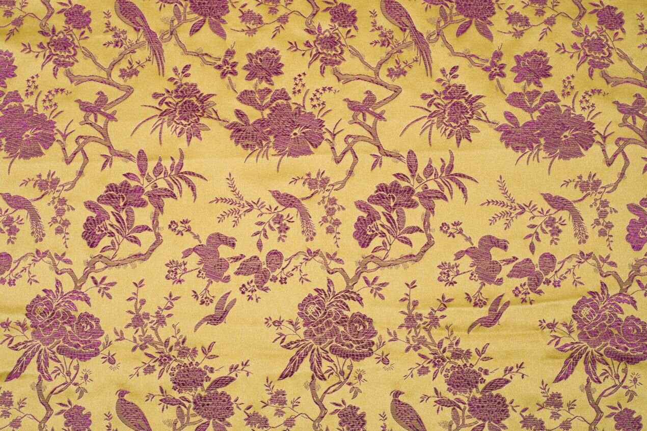 This brocade is a beautiful, opulent fabric created using the jacquard technique, which makes the production of highly detailed, woven patterns possible. Its intense colors, effective combination of matte and luster, and tactile surface, put it in a class of its own. Historically, brocade has always numbered among prestige fabrics, and that remains true to this day.