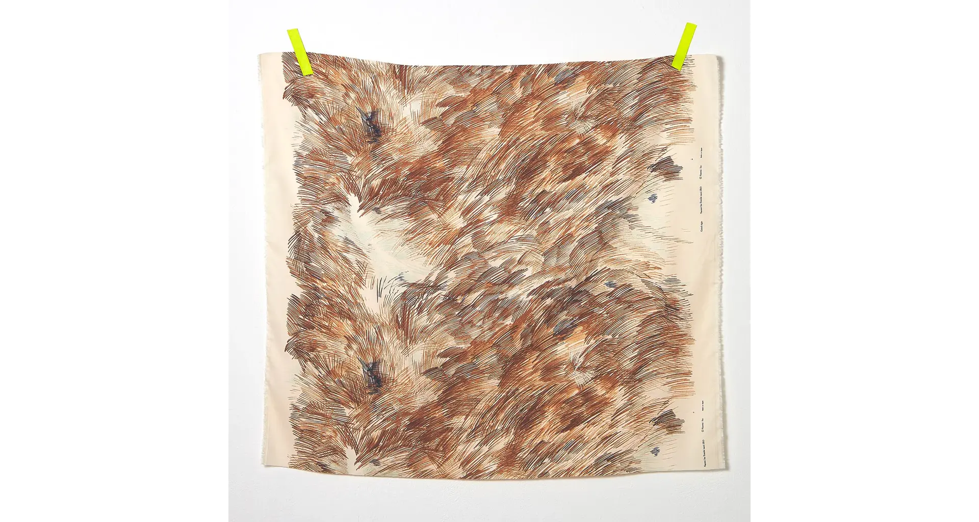 The Good Sign pattern calls to mind a field of tall grass bending before the wind or maybe the sort of idle doodling one might do when daydreaming with pen in hand. This regularly irregular pattern bursts with possibility.
