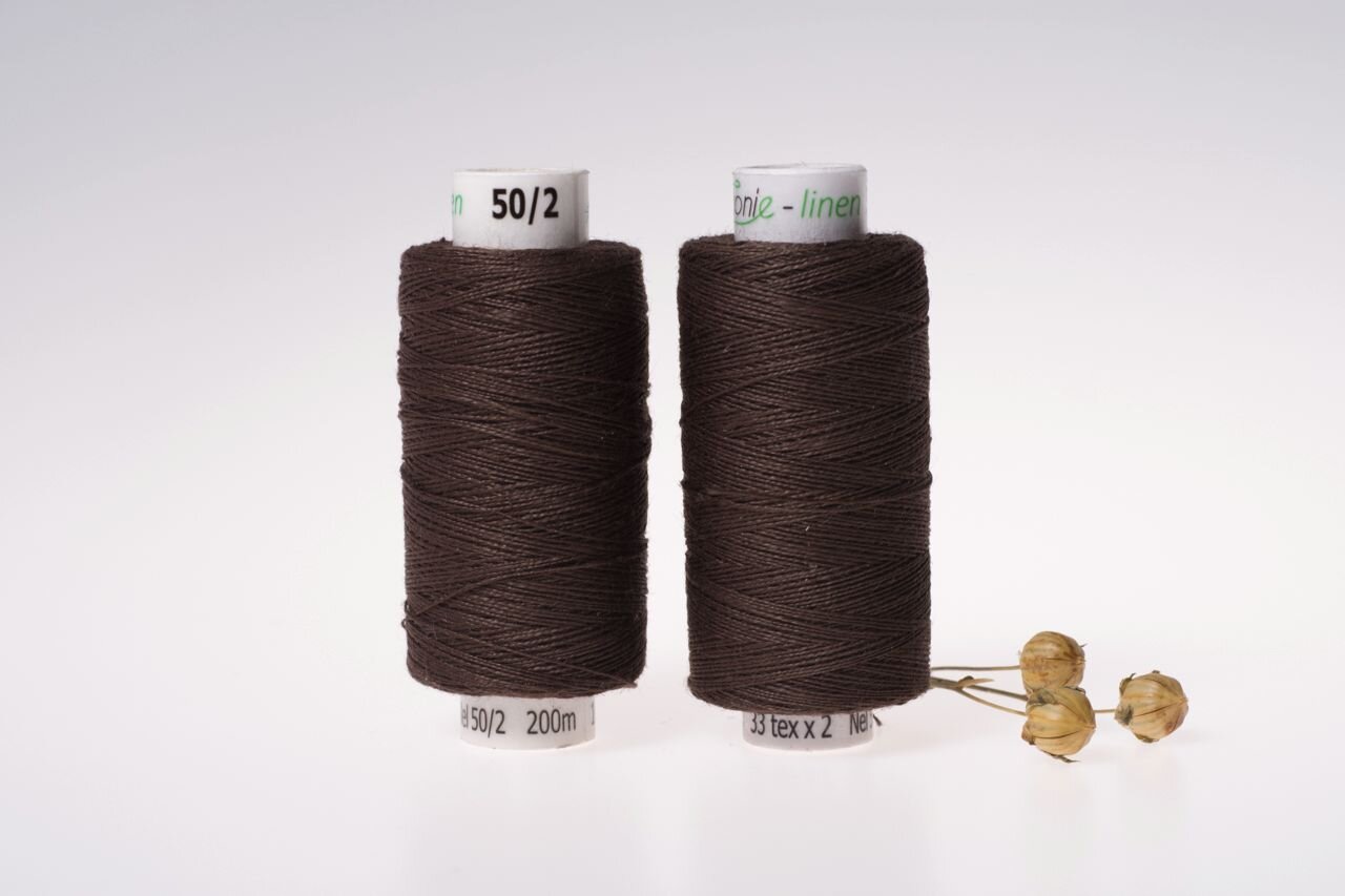 Genuine 100% flax linen thread (weight Tex 33x2) is a comparable to ordinary unbleached thread but is slightly softer. It is good for hand sewing coarser materials such as linens from 220 g/m2 (6.5 oz. per sq. yd.) and wool, and anything that you want to stitch firmly because it holds well. For hand and machine sewing of medium-coarse fabrics, try our fine linen thread 20x3.
