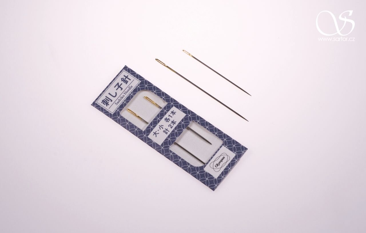 Each pack contains two special needles (57 and 67 mm) for sashiko, the Japanese needlework technique for mending clothes incorporating geometrical patterns. They are made by Olympus, a respected Japanese manufacturer with a reputation for quality that produces fabric, thread, and needles for traditional and contemporary sashiko.