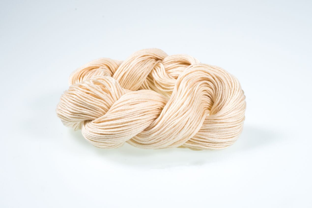Top-quality cotton embroidery floss manufactured in Japan for traditional sashiko needlework. Thick, sturdy sashiko thread in cream.
