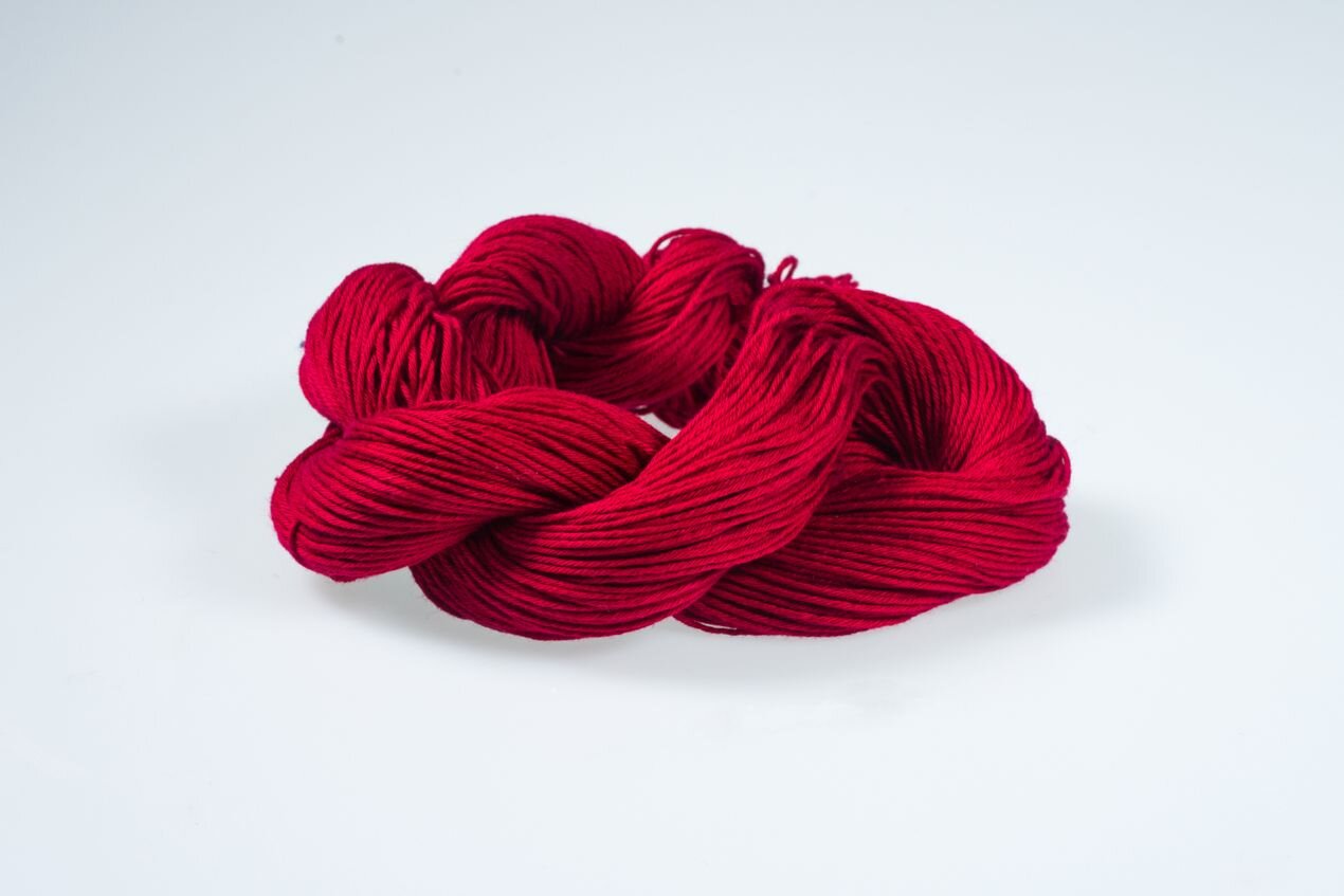 Top-quality cotton embroidery floss manufactured in Japan for traditional sashiko needlework. Thick, sturdy sashiko thread in crimson.