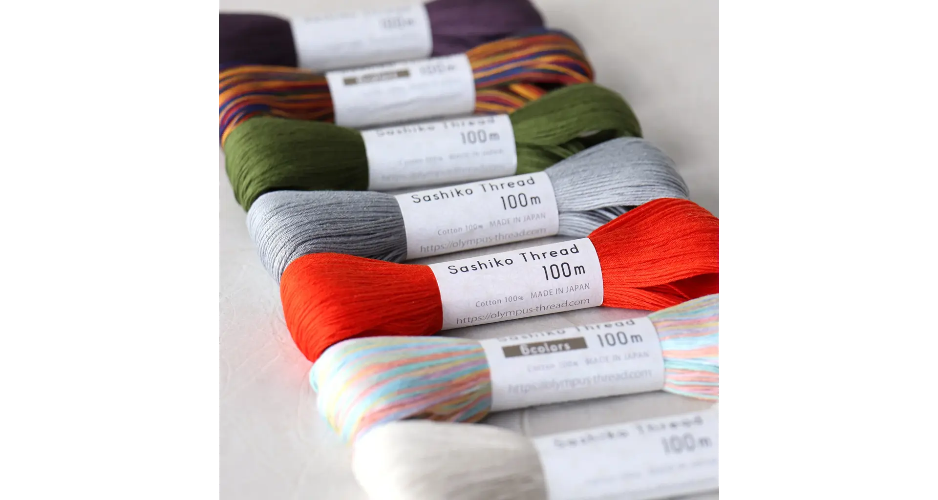 This 100% cotton thread is made especially for sashiko embroidery by Olympus, a respected Japanese manufacturer with a reputation for quality. Aside from more traditional textiles and thread, the company produces sashiko thread in modern pastels and offers sashiko kits.