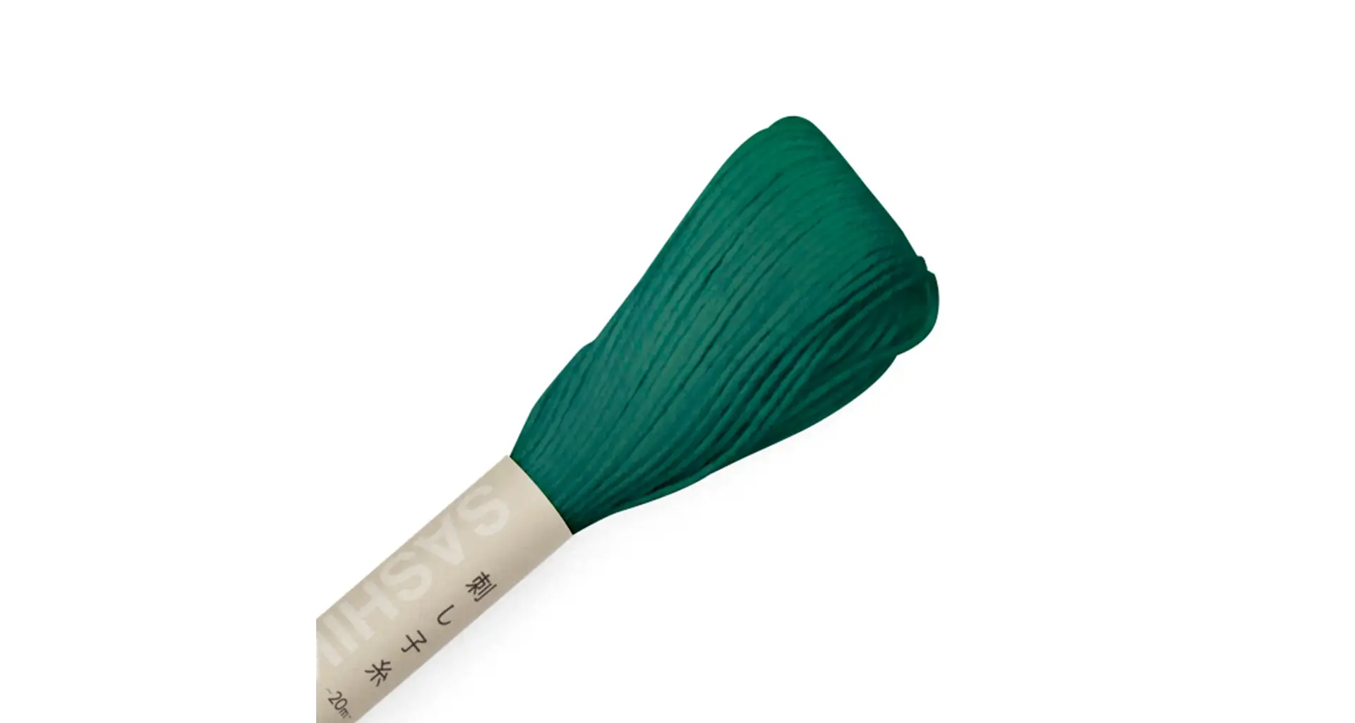 Top-quality cotton embroidery floss manufactured in Japan for traditional sashiko needlework. Thick, sturdy sashiko thread in dark green.
