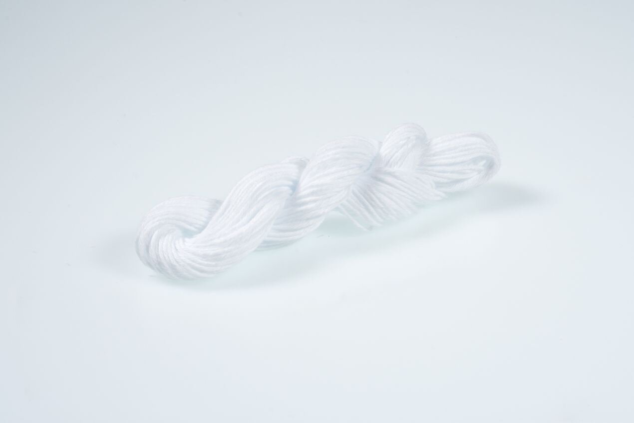 Top-quality cotton embroidery floss manufactured in Japan for traditional sashiko needlework. Thick, sturdy sashiko thread in white.