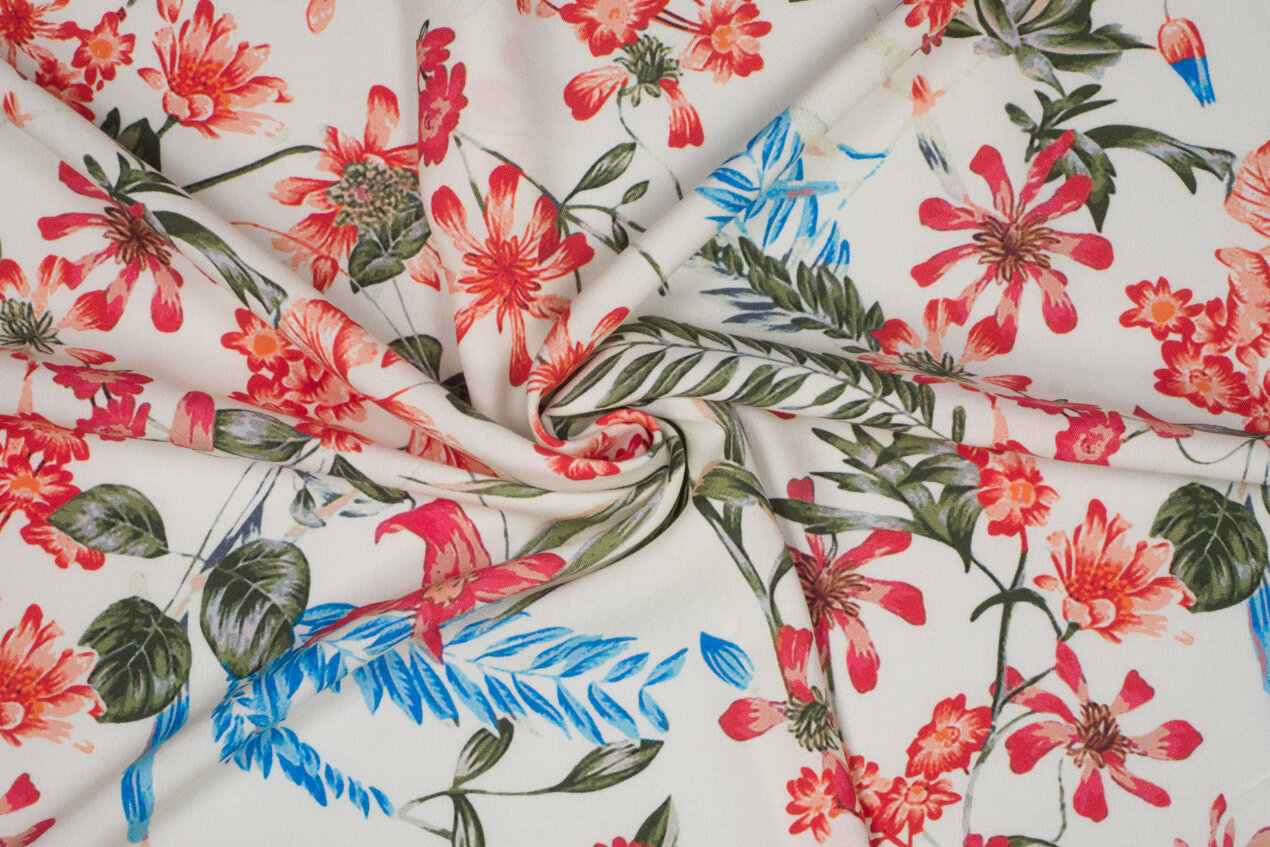 Sartor designer fabric FLOWERS, EcoVero, ivory white, 1.2m