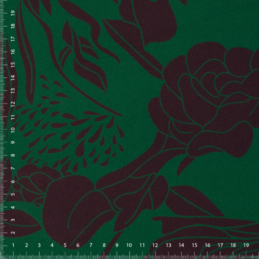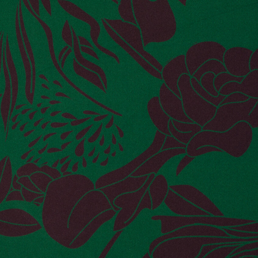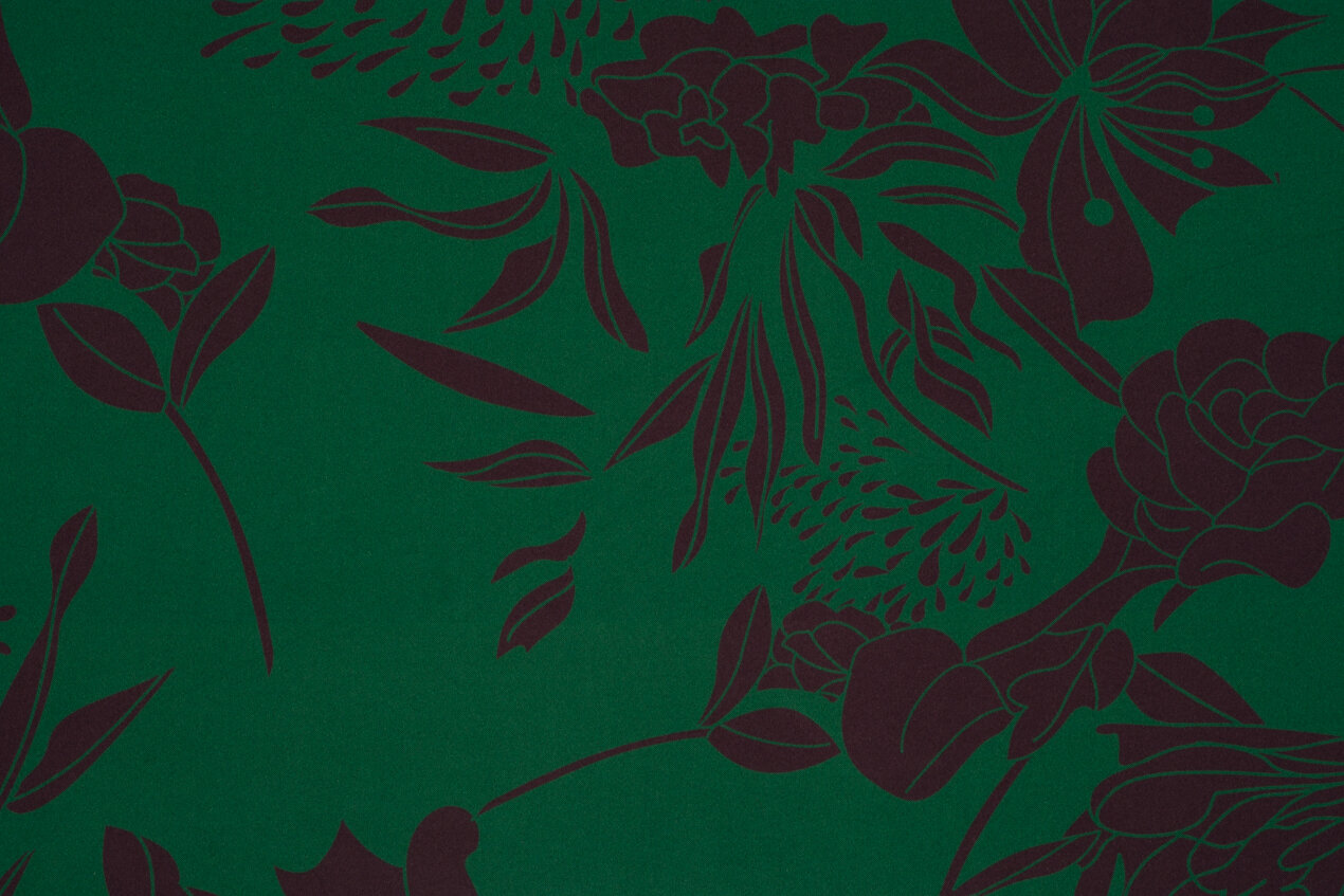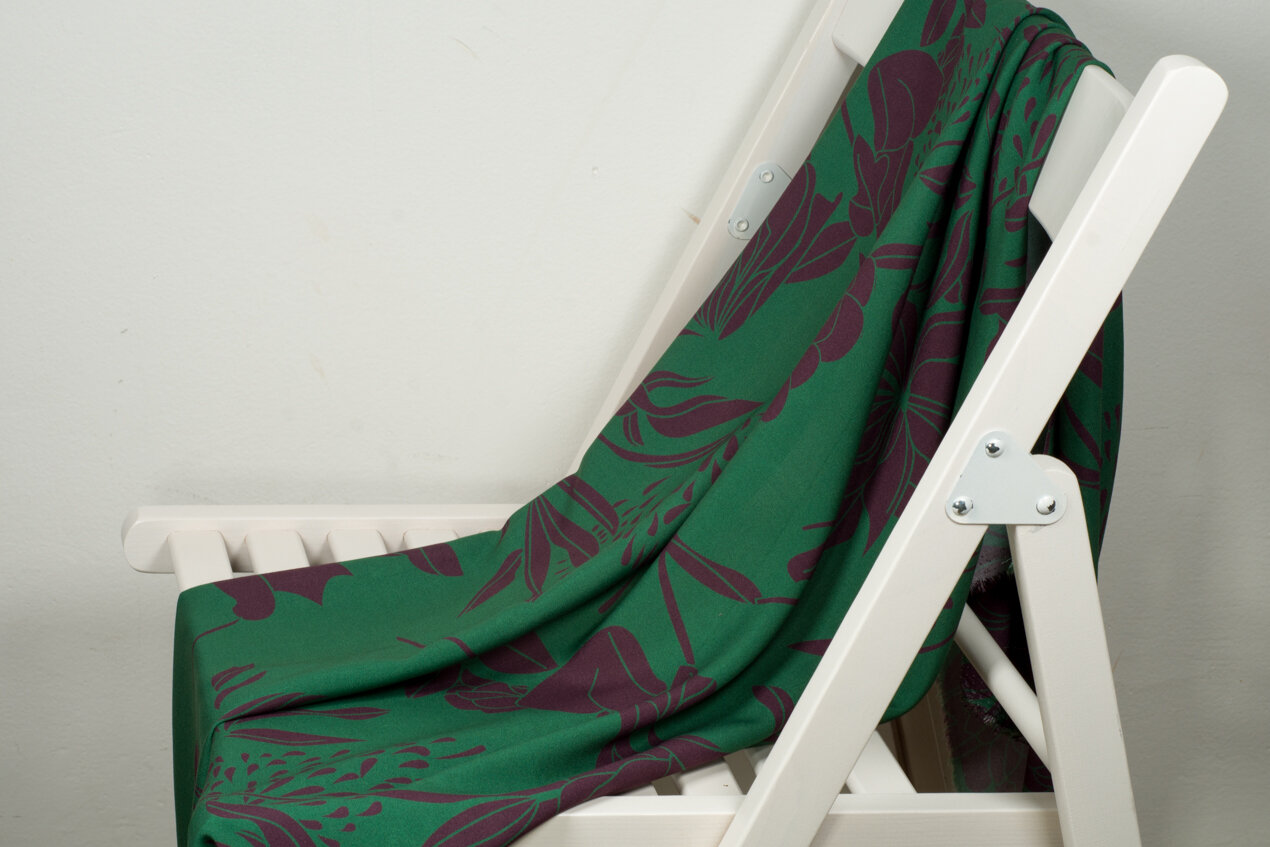The fabric features an exclusive floral print in green and pink, created by Sartor Bohemia.
