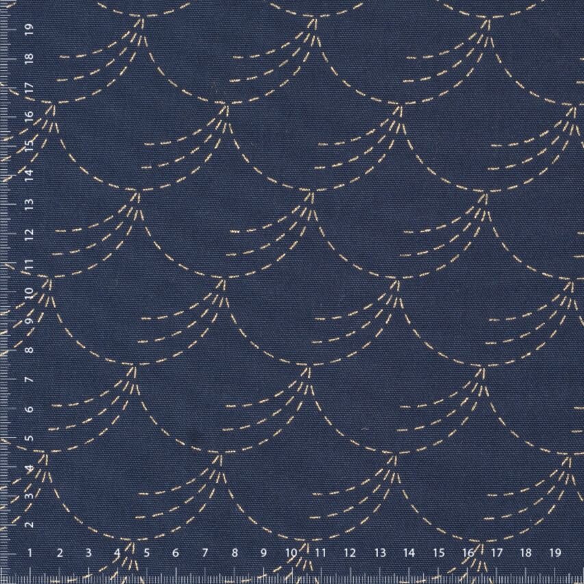 Japanese cotton fabric in indigo with eight preprinted sashiko patterns. Sold by the panel (length 60 cm and width 108 cm includes all 8 patterns). Perfect for practice. Use the swatches for small projects. Template washes out.