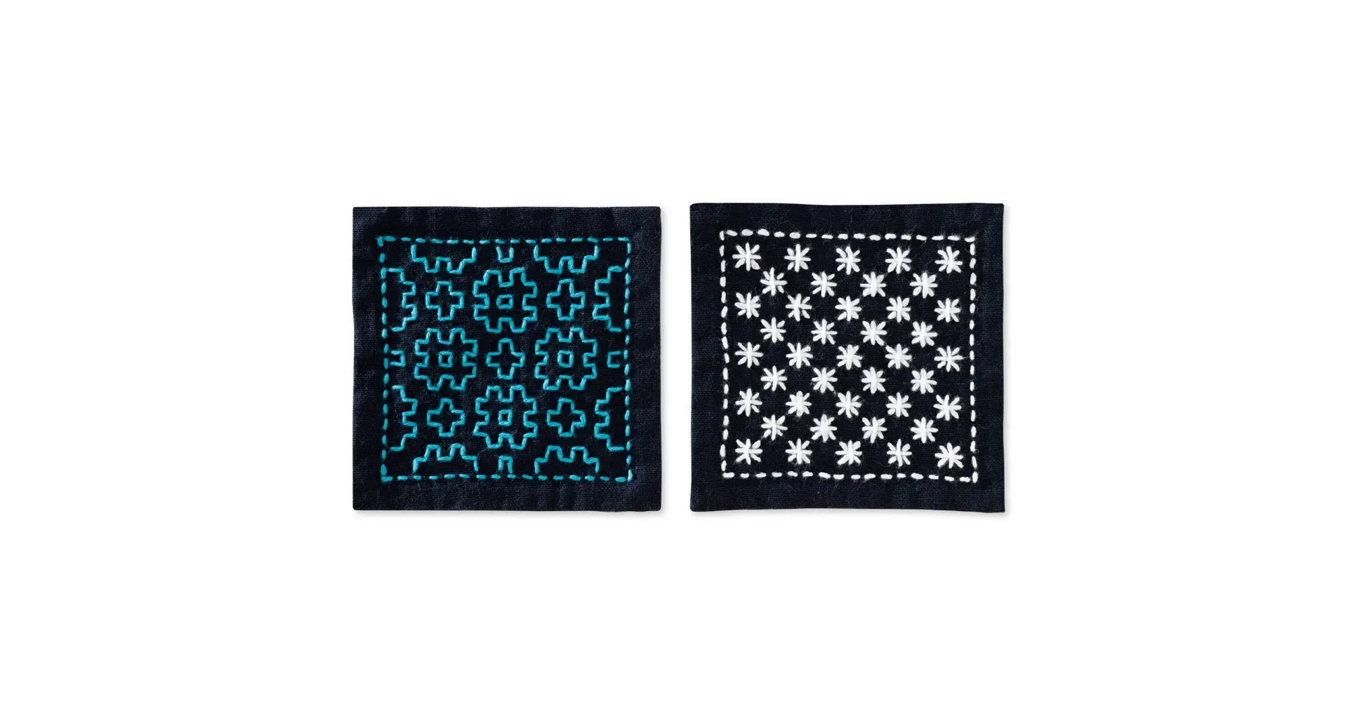 You might use the kit just to try your hand at sashiko or use the finished squares to make coasters, a gift bag, greeting cards, or a framed decoration.