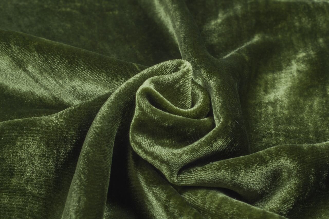 A light, fluid velvet fabric made of natural silk and rayon in olive, silk velvet makes beautiful tops, dresses, skirts, jackets, kimonos, scarves, and throws. It looks fabulous shirred, cut on the bias, draped in cowl necklines, and wrapped around the body.