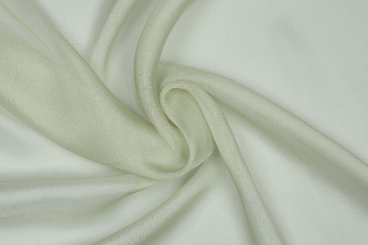 One of our finest silk fabrics, this chiffon is airy and light with a graceful drape. A diaphanous fabric made of genuine mulberry silk in mint color. Great for layering, romantic bridal trains, wraps, billowy sleeves.
