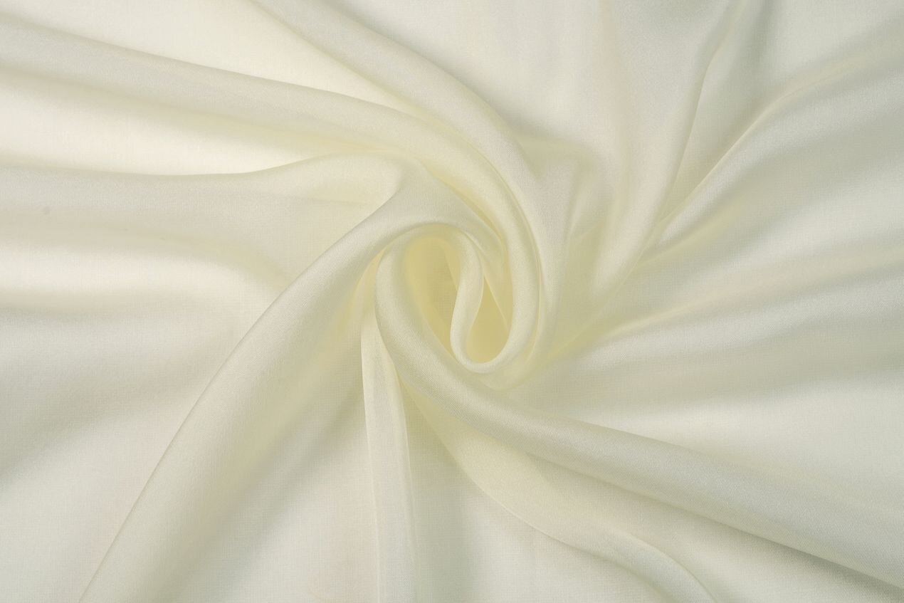 One of our finest silk fabrics, this chiffon is airy and light with a graceful drape. A diaphanous fabric made of genuine mulberry silk in pale yellow color. Great for layering, romantic bridal trains, wraps, billowy sleeves.