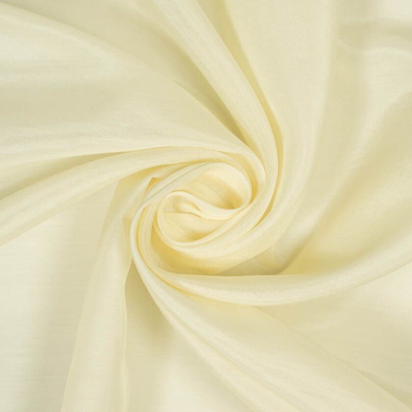 Voile is a very fine, airy fabric, usually woven from cotton. This voile in a warm shade of white, however, is made of a mix of cotton and silk. The silk makes them lighter and finer and gives them a subtle sheen, while the cotton adds softness and helps then hold their shape. Like habotai, voile makes a very good lining for light garments (dresses, blouses, jackets) but is also a wonderful stand-alone material for tops, tunics, skirts, and dresses. Lighter shades have a tendency to be sheer, making the use of the lining or underlayer recommendable.