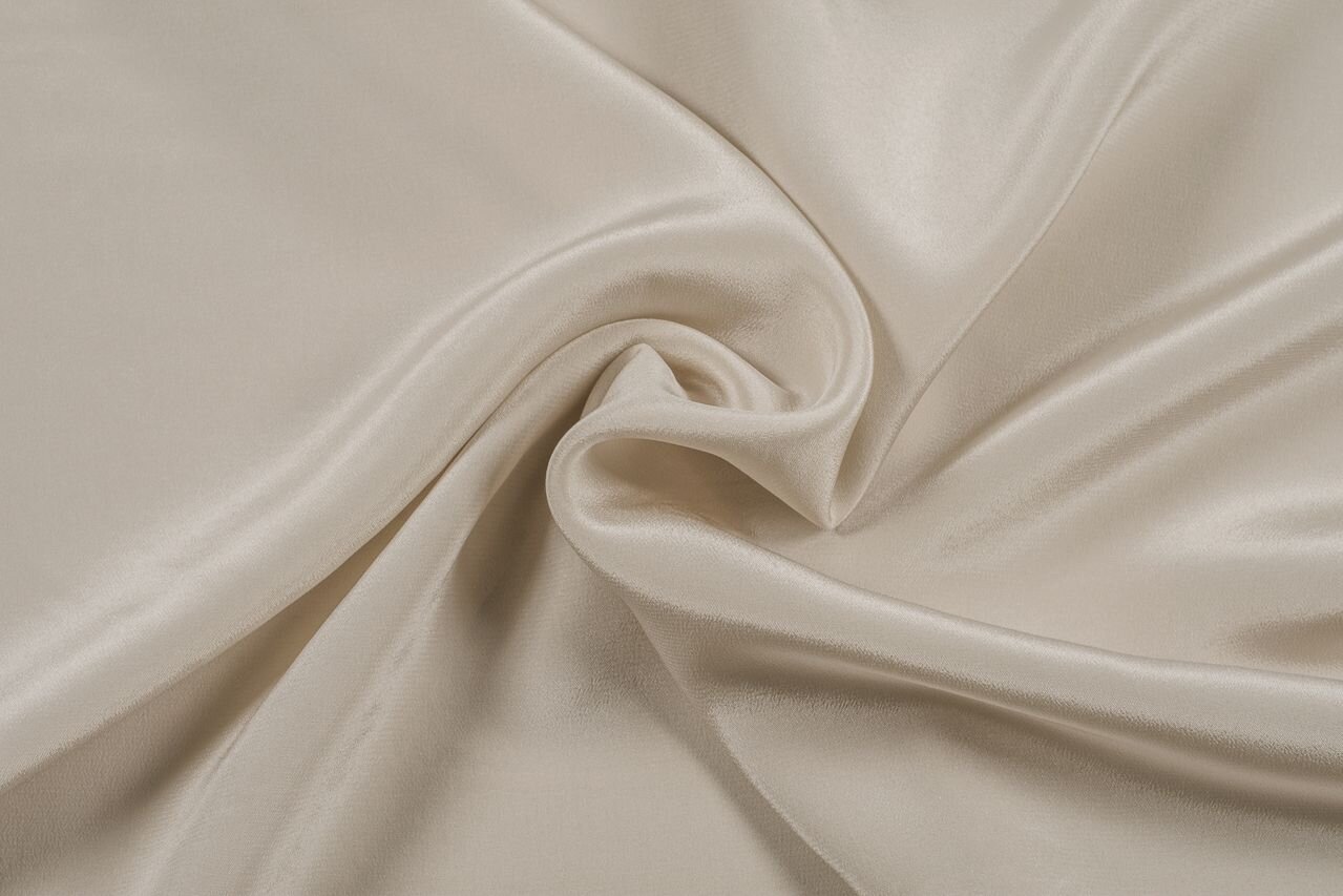A beautiful, fluid silk crêpe fabric in beige with a matte sheen, silk crêpe de Chine is known for its exceptional fluidity – it drapes beautifully – and typical, slightly pebbly structure. Perfect for dressy blouses, billowy skirts, evening gowns and bridal.