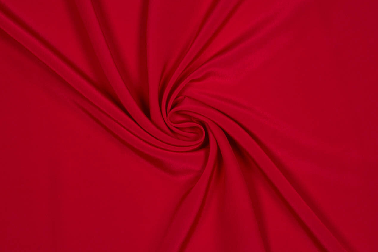 A beautiful, fluid silk crêpe fabric in crimson with a matte sheen, silk crêpe de Chine is known for its exceptional fluidity – it drapes beautifully – and typical, slightly pebbly structure. Perfect for dressy blouses, billowy skirt, evening gowns and bridal.
