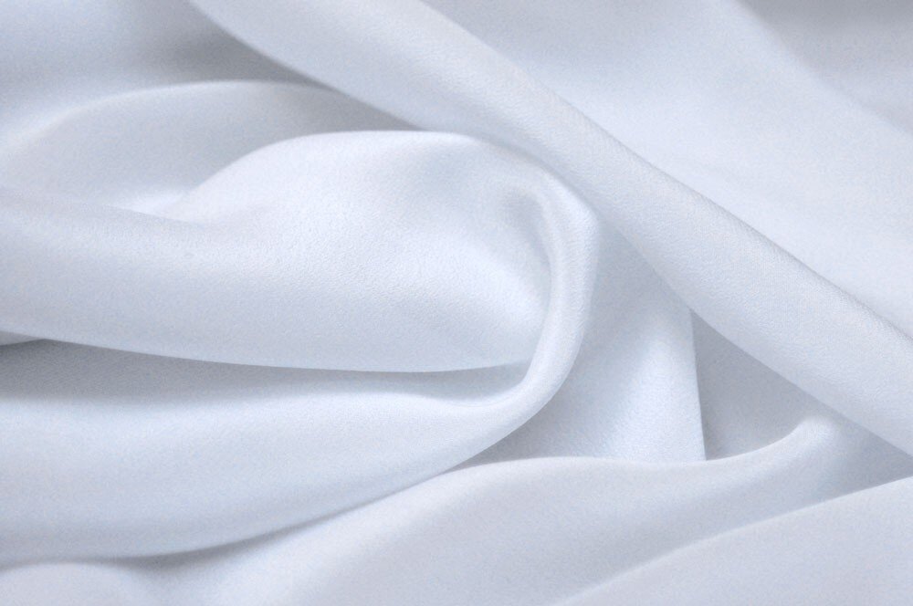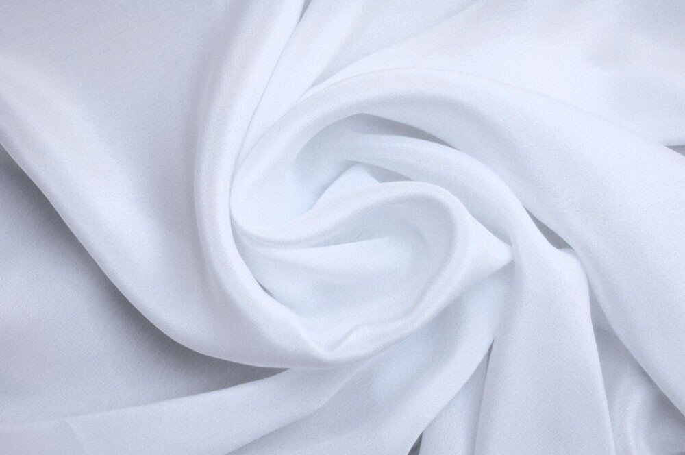 A beautiful, fluid silk crêpe fabric in white with a matte sheen, silk crêpe de Chine is known for its exceptional fluidity – it drapes beautifully – and typical, slightly pebbly structure. Perfect for dressy blouses, billowy skirts, evening gowns and bridal.