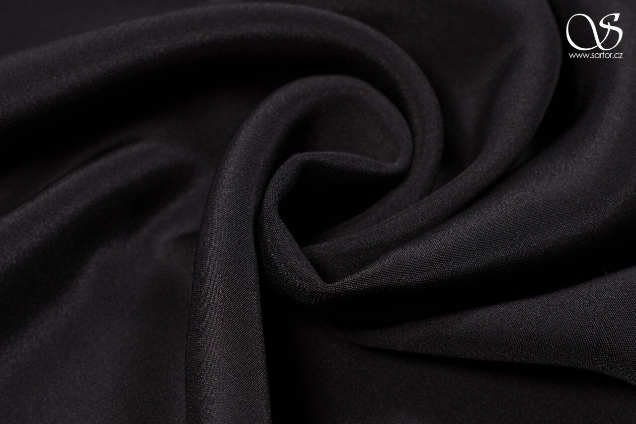 A luxurious, heavy, supple fabric made from pure silk in black, crêpe marocain drapes beautifully. Makes breathtaking evening dresses and bridal gowns.