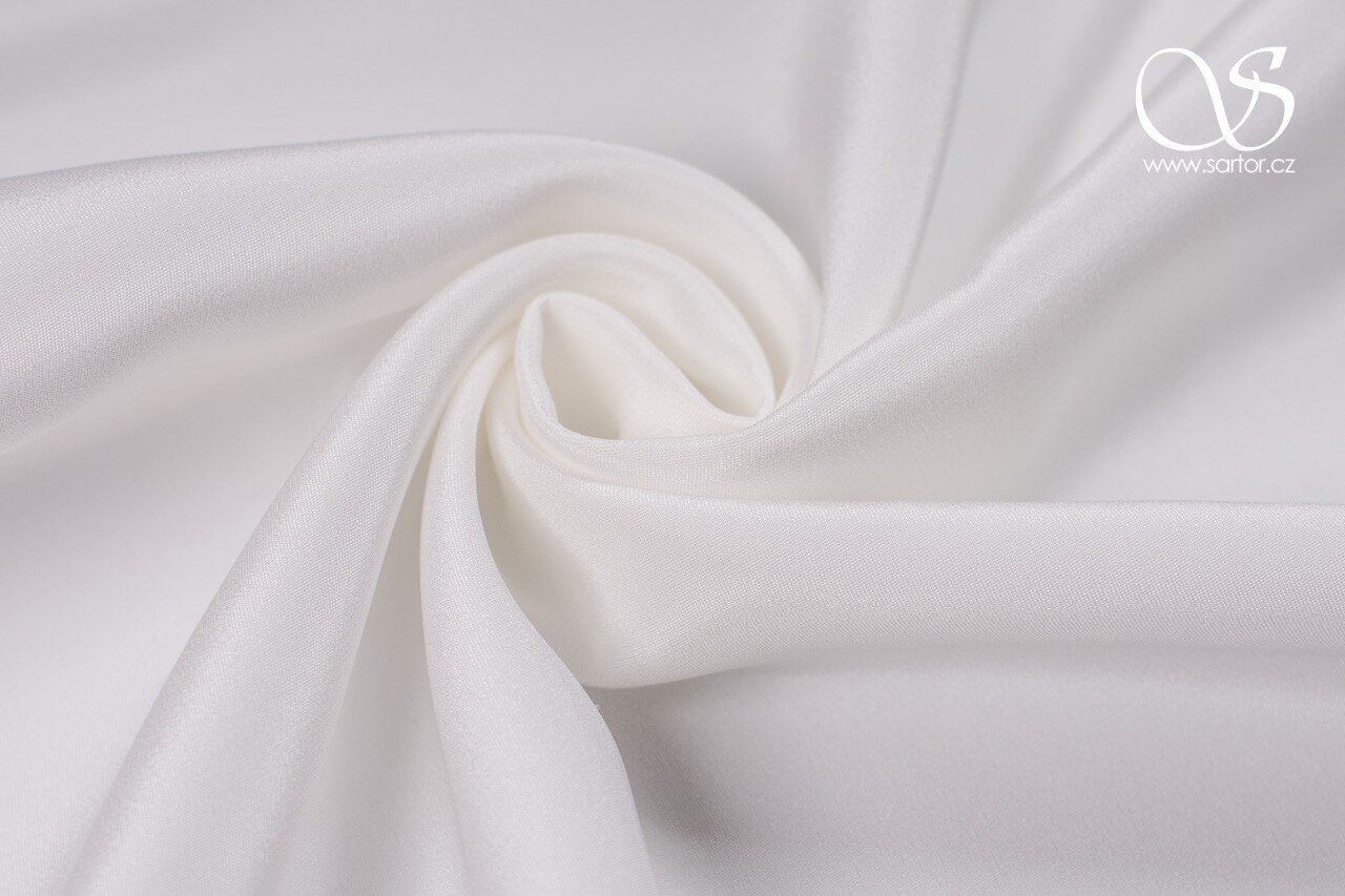 A luxurious, heavy, supple fabric made from pure silk in light ivory, crêpe marocain drapes beautifully. Makes breathtaking evening dresses and bridal gowns.