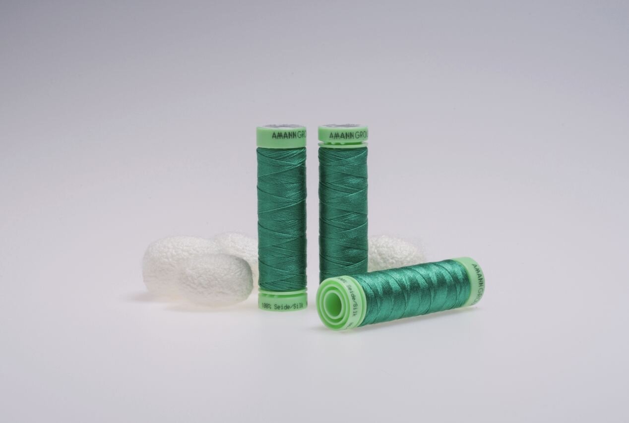 Pure silk thread in green for hand and machine sewing. Use for sewing any silk garment as well as for historical costumes.
