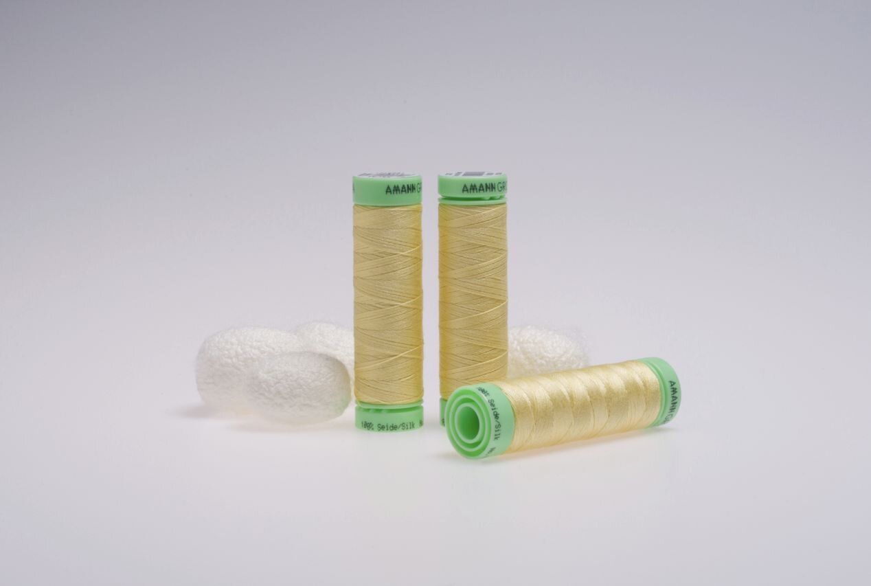 Pure silk thread in pale yellow for hand and machine sewing. Use for sewing any silk garment as well as for historical costumes.