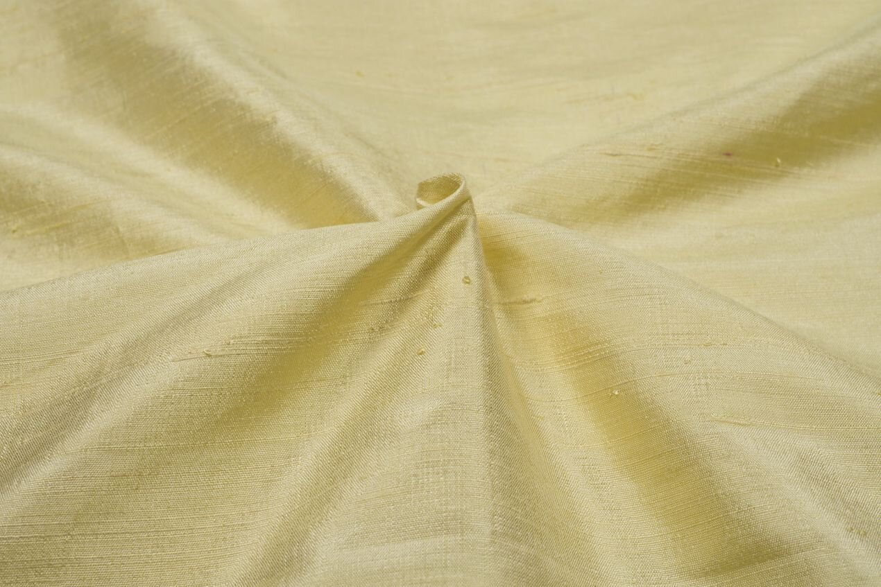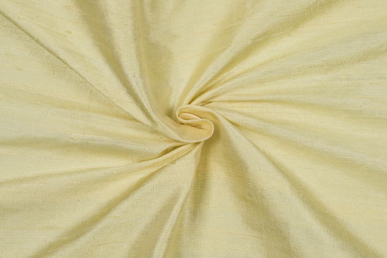 Silk dupioni is immediately recognizable for its distinctive texture. Fine warp threads are interwoven with weft threads of uneven thickness, resulting in an irregular, crosswise, slubbed stripe. This rougher dupioni fabric displays tiny knots and slubs that give it an almost rustic look. If you’d like something with a less prominent texture, try our fine dupioni.