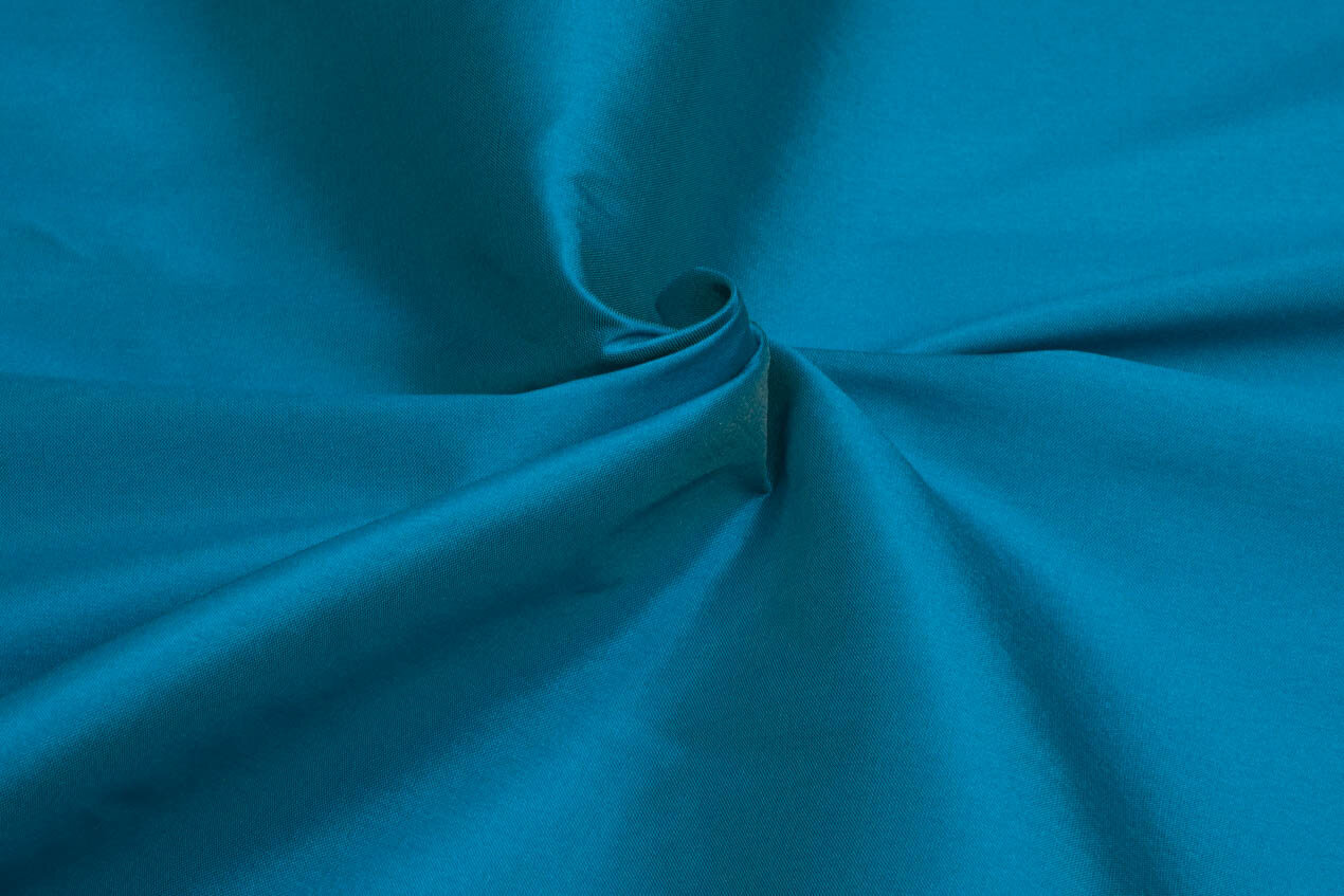 Taffeta is a sturdy fabric with a stiff, papery hand. It holds a fold perfectly, and if you want to experiment with intricate, variegated cuts, taffeta is a capable partner. Of course, it also excels in simple pieces like a circle skirt or a sheath dress.