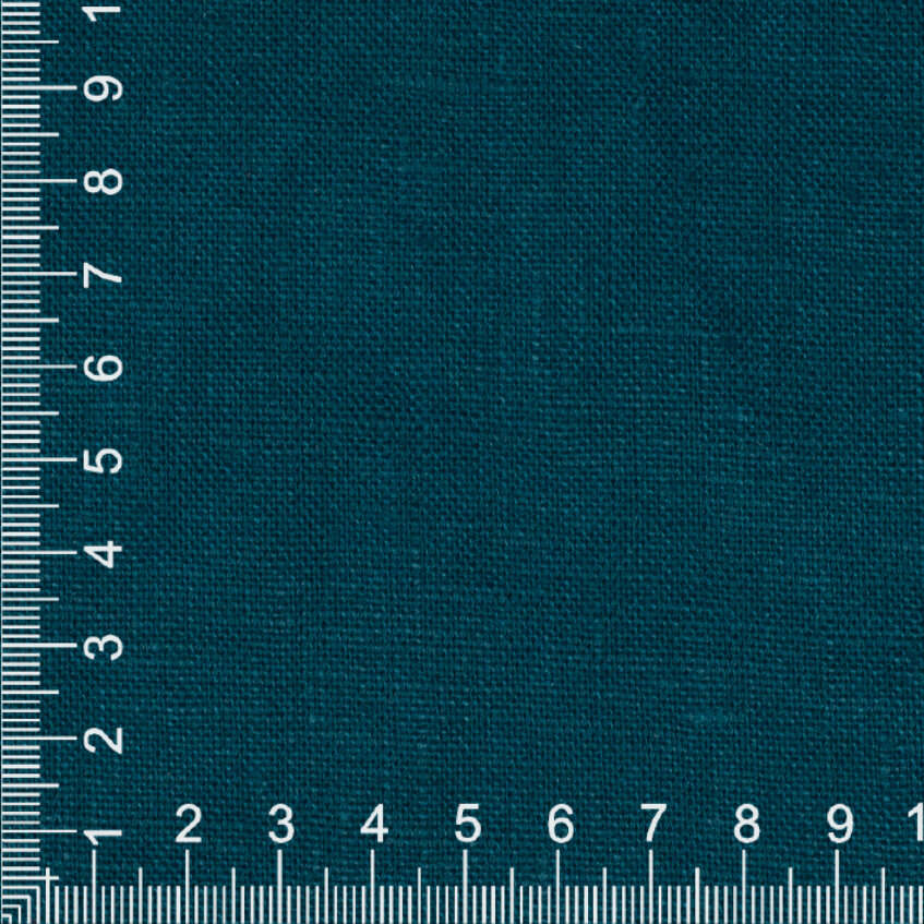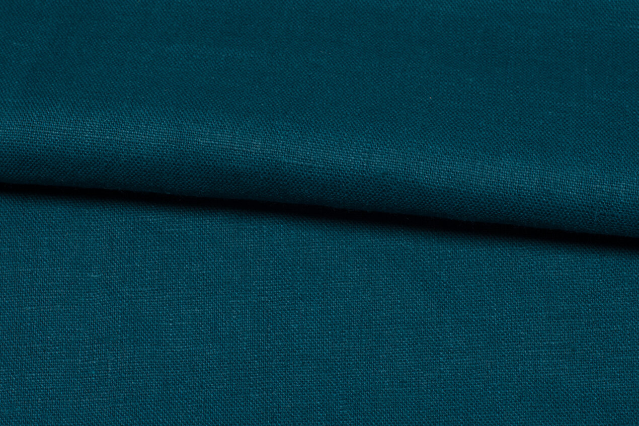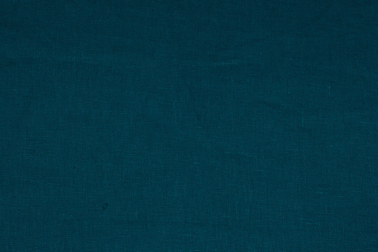 A heavy linen (more than 7oz) fabric in a classic plain weave, made of natural linen in teal. Sturdy and quite stiff, our heavy linen works well in skirts, trousers, and jackets, as well as for curtains and pillowcases.