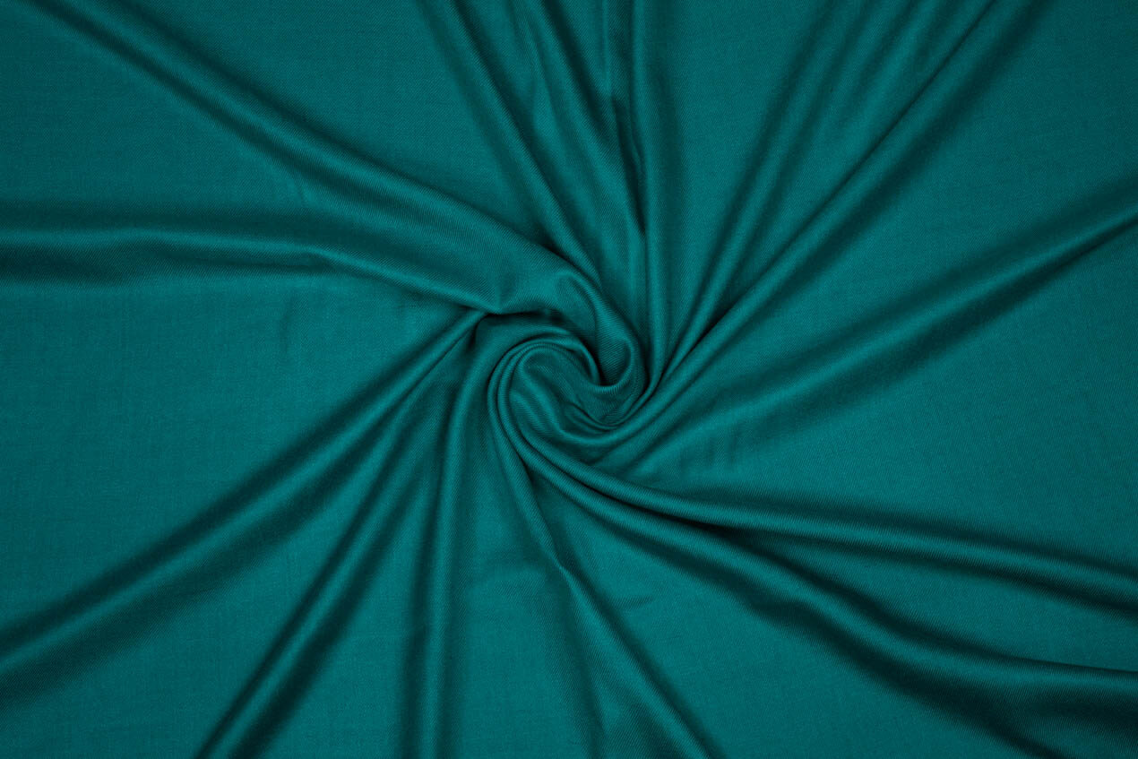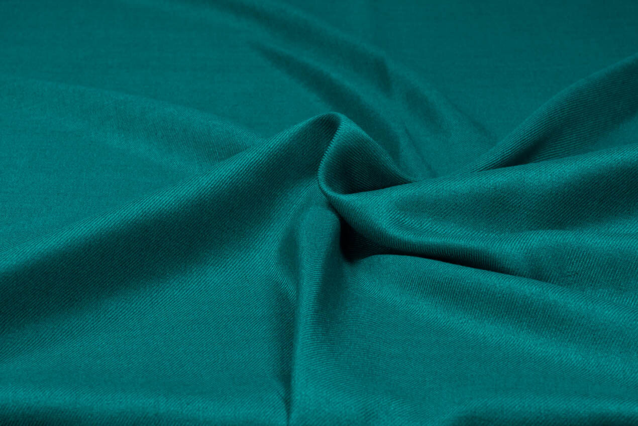 A soft, fine fabric in teal made from natural eri silk in a classic twill weave. Eri silk is a good choice for light blouses, tunics, or dresses.